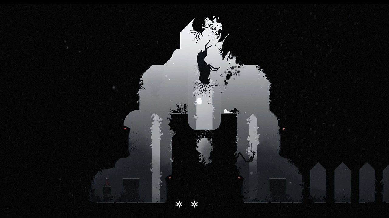 짙은 안개가 낀 것 같은 음산한 흑백의 숲 속에서 소년은 무언가를 향해 맹목적으로 나아갑니다. 그 과정에서 몸을 산산조각 내는 위험한 함정도 만나고 소년을 위협하고 공격하는 다른 아이들도 만나며, 정체를 알 수 없는 거미 형태의 거대한 괴물도 만납니다. 중력의 방향을 바꿔주는 장치도 있고 분명한 목적 없이 움직이는 듯한 거대한 톱니바퀴도 있지요. 앞을 가로막는 모든 걸 파괴하는 기관총도 있습니다. 그래서 기본적인 게임 플레이는 <인사이드>와 거의 동일합니다. 게임으로서의 재미도 크게 차이 나지 않고요. 그렇다고 차별점이 없는 건 아닙니다.