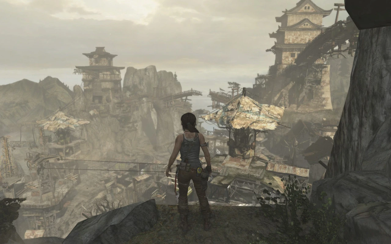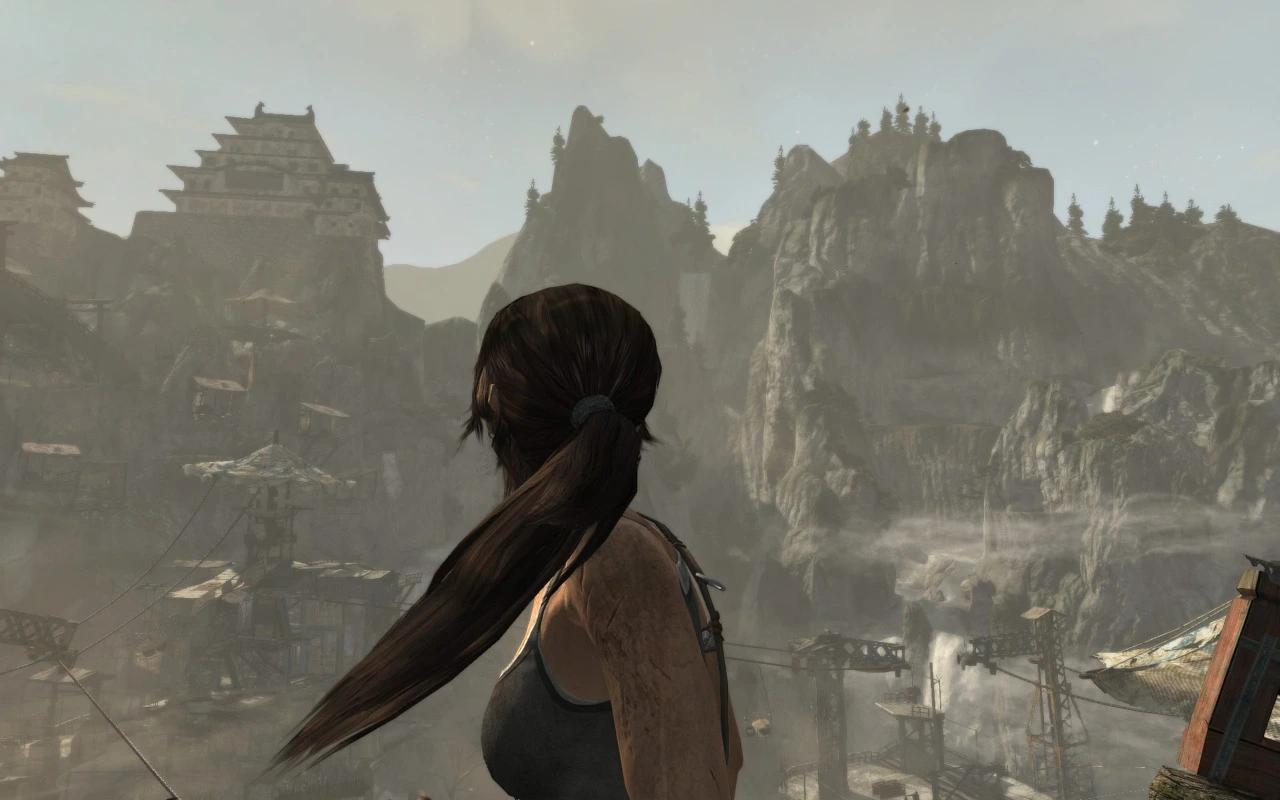 <아이솔레이션>에서는 우주정거장 세바스토폴의 디테일한 내부 디자인의 매력이 정말 대단했었는데 <툼 레이더>에서는 세부적인 부분보다는 원경이 아름다울 때가 많았습니다. 그래서 풍경 사진 찍는 기분으로 스크린샷을 남기기도 했고요. 하지만 먼 경치의 매력인 만큼 야마타이 섬을 굳이 이곳저곳 돌아다닐 만한 끌림은 없었습니다. 훌륭한 포토스폿이 몇 군데 있는 정도의 느낌이었어요. 앞에서 말했던 역동적인 동작의 즐거움 때문에 클리어를 하고 나서도 아이템을 찾아 여기저기 돌아다니기는 했지만요.