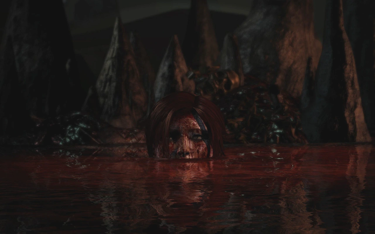 중후반부에 굉장히 인상적인 장면이 하나 나오는데요, 말 그대로 피웅덩이 속에 빠졌던 라라가 각성이라도 한 것 같은 눈빛으로 피웅덩이 위로 머리를 내밀며 빠져나오는 모습입니다. 아마 영화 <지옥의 묵시록(Apocalypse Now, 1979)>의 명장면을 오마주한 거겠죠.