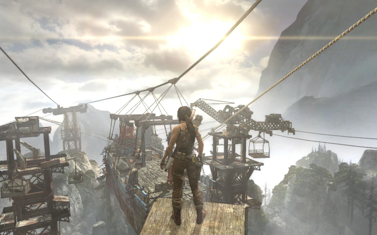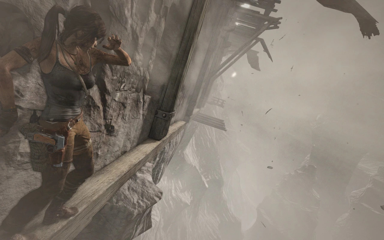 <툼 레이더>는 아주 역동적인 게임이었습니다. 반면 <아이솔레이션>은 정적이었어요. 역동적인 순간도 많았지만 기본적으로는 액션보다는 텐션에 중점을 둔 게임이었죠. 여러 가지 총기를 사용할 수 있었지만 소음을 내면 에이리언/제노모프가 찾아오기 때문에 정말 어쩔 수 없을 때가 아니면 쓸 수가 없었어요. 심지어 달리기만 해도 귀신 같이 쫓아오다보니 항상 걸어 다녀야 했어요. 조금이라도 위험하다 싶으면 몸을 웅크려 기어 다녀야 했고요. 하지만 <툼 레이더>는 기본 이동이 달리기였어요. 달리기만 할 뿐만 아니라 점프를 하며 장애물을 뛰어넘기도 하고요. <아이솔레이션>은 폐쇄된 우주정거장이 배경인 만큼 갈 수 있는 곳에 제한적이었던 반면, <툼 레이더>에서는 '잘하면 갈 수 있을 것 같은데...' 싶은 곳 상당수가 실제로 이동할 수 있는 곳이었다는 점이 신선했습니다. '설마 저기로도 갈 수 있을까' 싶은 곳에 갈 수 있을 때도 많았고요. 지붕과 지붕 사이를 넘나들며 기둥을 붙잡고 아크로바틱하게 몸을 날리는가 하면 뛰어올라 절벽을 기어오르기도 합니다. <아이솔레이션>에서는 가능하지 않을뿐더러 가능하더라도 결코 해서는 안 되는 행동들입니다.