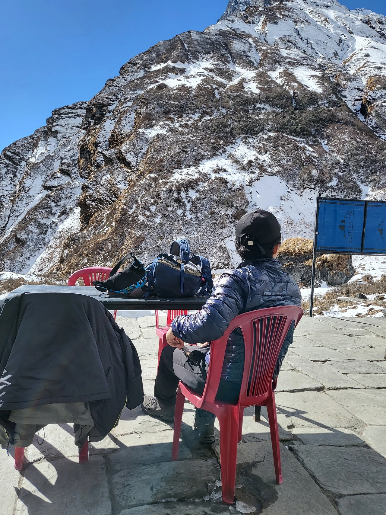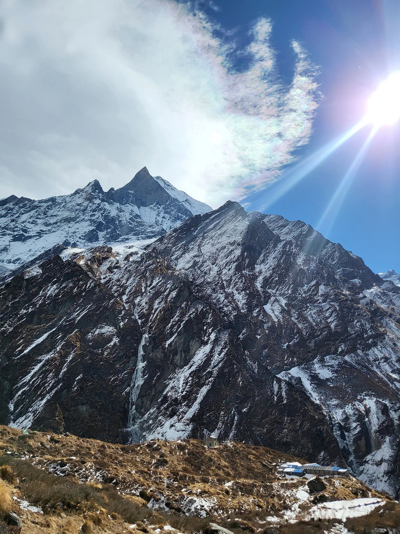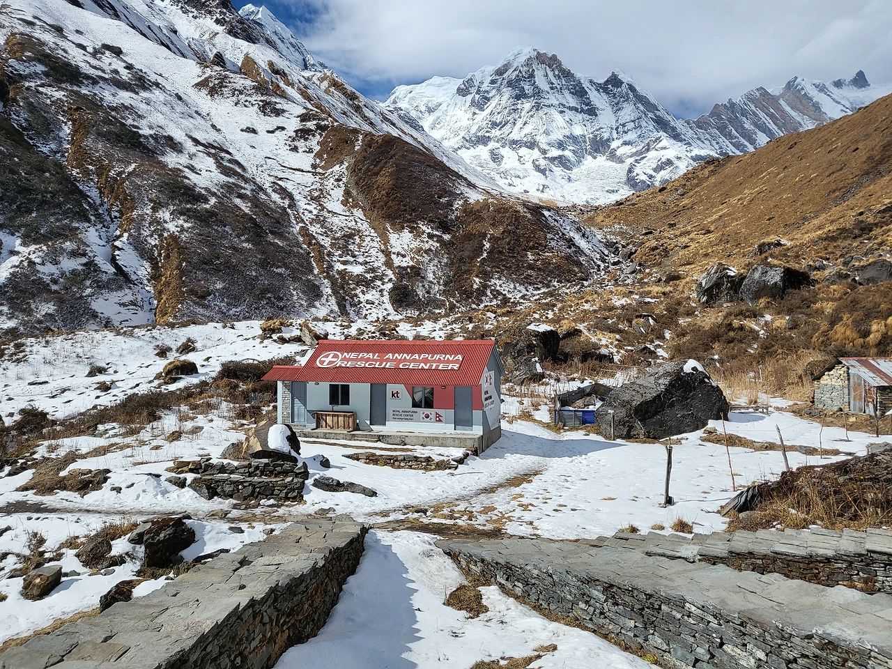 MBC롯지에 도착 고개를 돌리면 예쁜 설산들의 모습이 나를 반긴다. ABC에서 자도 되고 MBC 롯지에서 자도 되지만 MBC에서 자면 ABC까지 무거운 짐을 갖고 가지 않아도 돼서 MBC에서 자기로 결정했다.