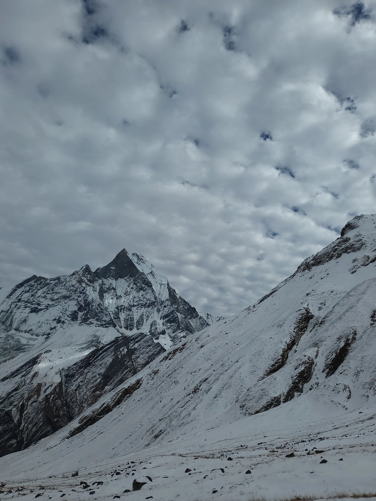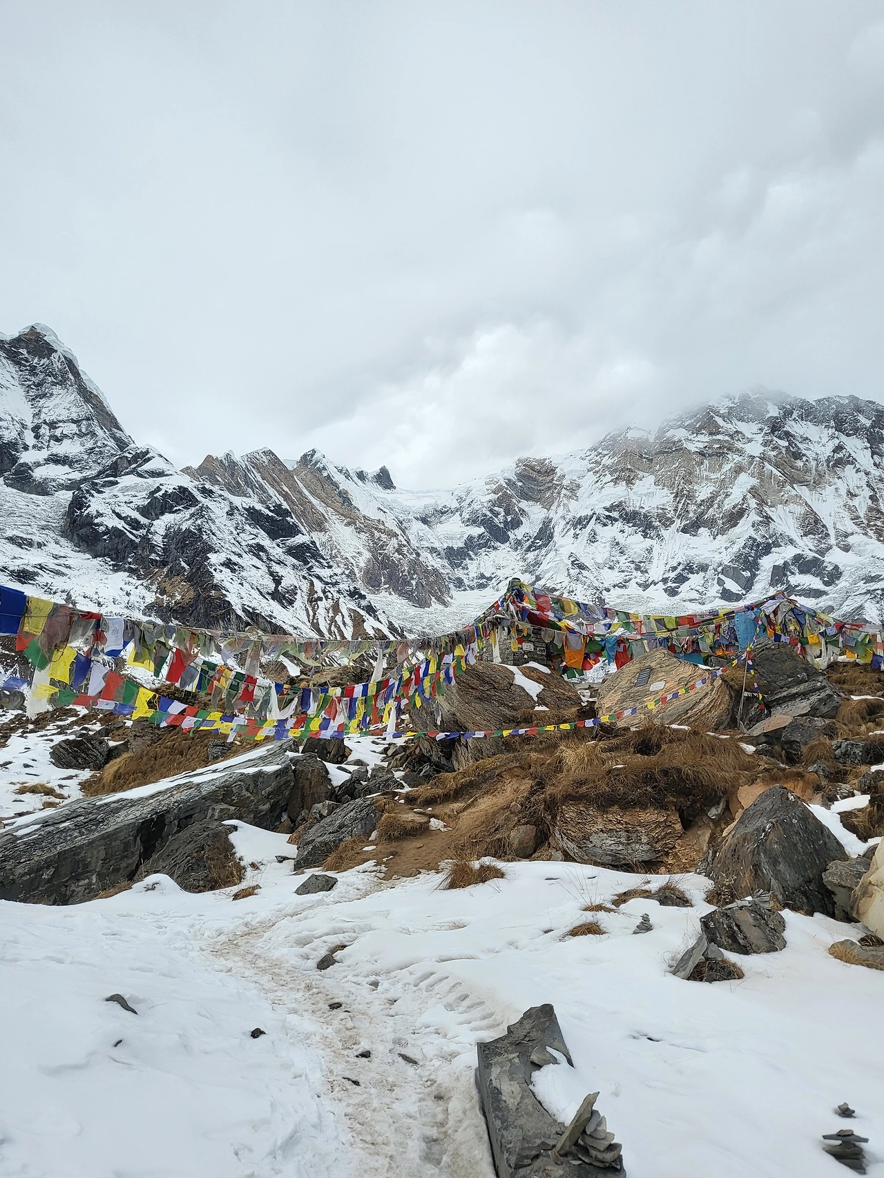 사방으로 안나푸르나 마추푸차레 세계에서 유명한 산들이 나를 둘러싸고 있었다. 이 광경에 난 압도되고 말았다. 자연의 위대함이 느껴졌다. 눈앞에 펼쳐진 만년설과 빙하가 녹아내린 계곡물이 아름다워서 마치 천국이나 지옥이 있다면 이런 느낌일 것이라는 생각이 들었다.