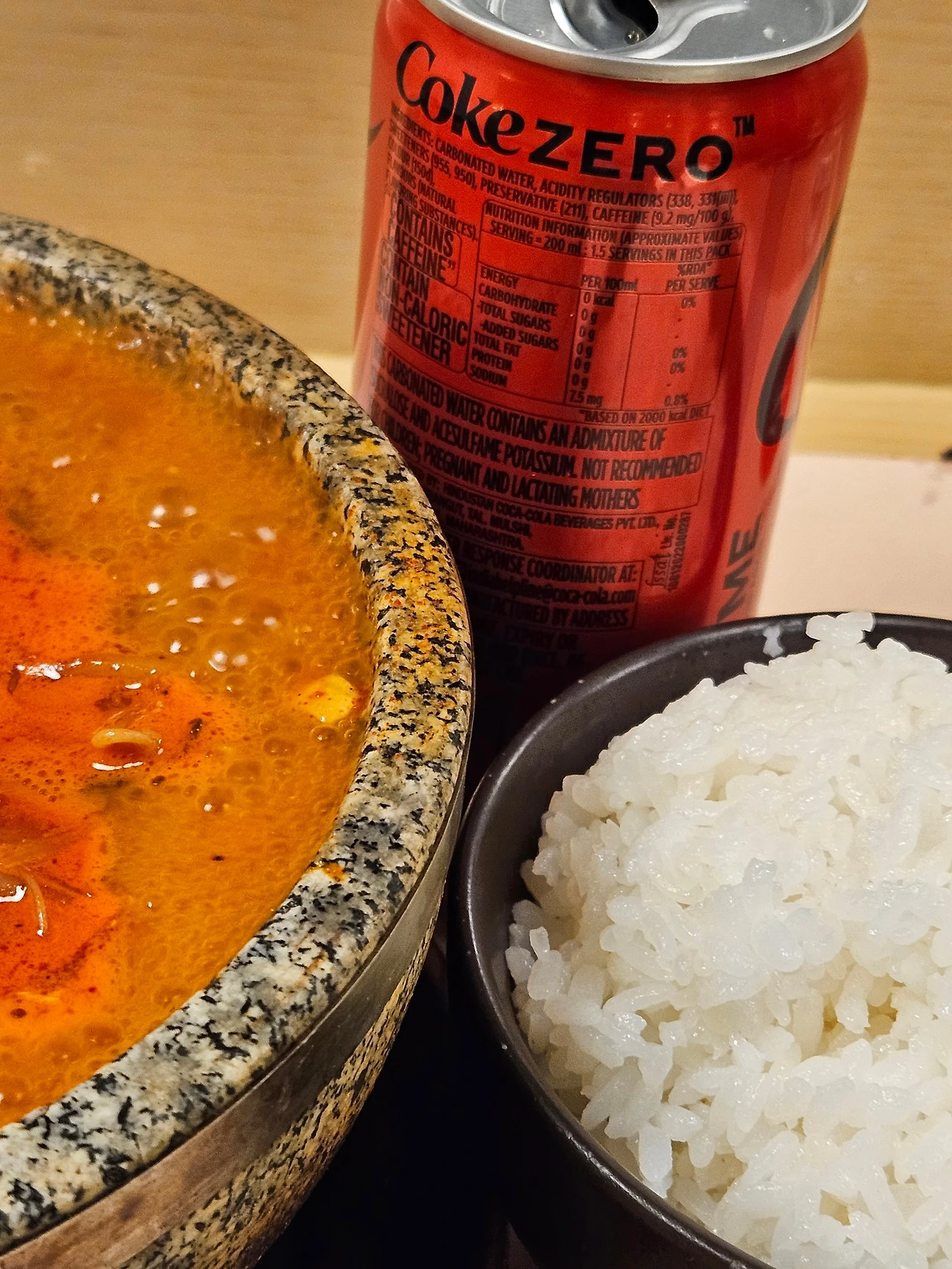 달고나에서 비빔밥, 된장국, 제육덮밥, 초코 케이크, 아메리카노를 먹어봤다.