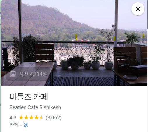 이분이 먹었던 콜드커피에 아이리쉬버거를 먹으며 비틀즈 카페에서 리시케시의 전체를 한번 바라봐보세요.