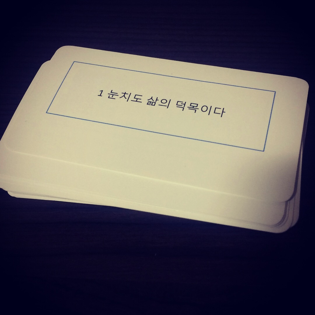 (2) 그중 랜덤으로 한 장 뽑습니다. 섞어서 뽑아도 되고, 맨 앞장에 있는 것을 뽑아도 됩니다.