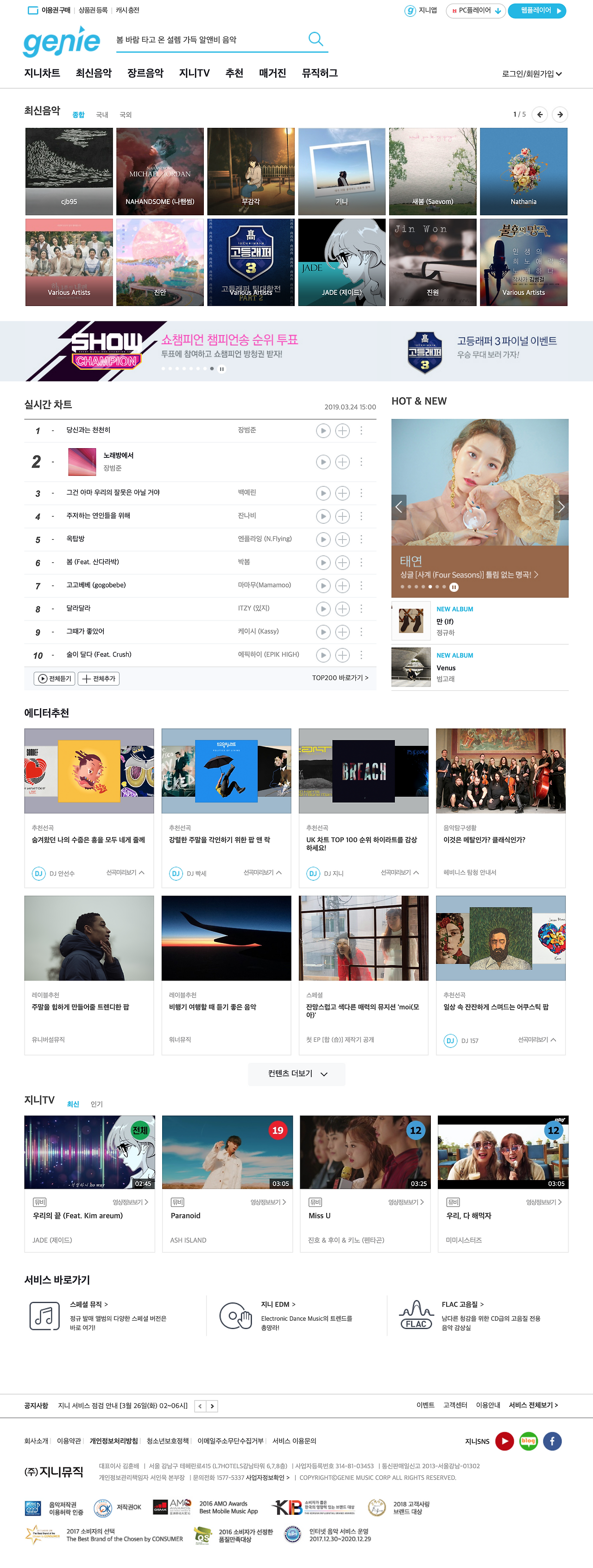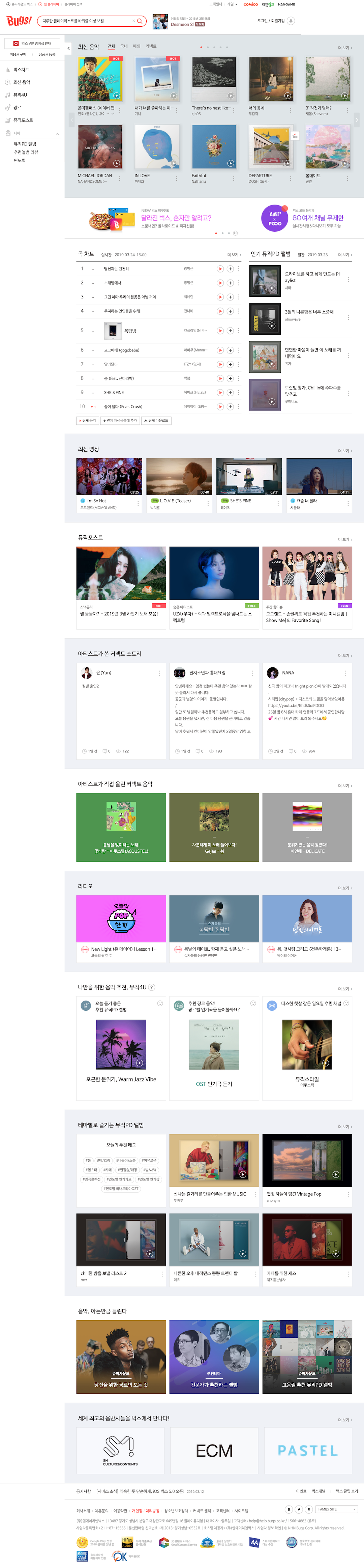 일단 대표적인 사이트 중 하나인 벅스를 보고 오시죠.(벅스를 택한 이유는 제가 쓰는 사이트라서 그렇습니다)
