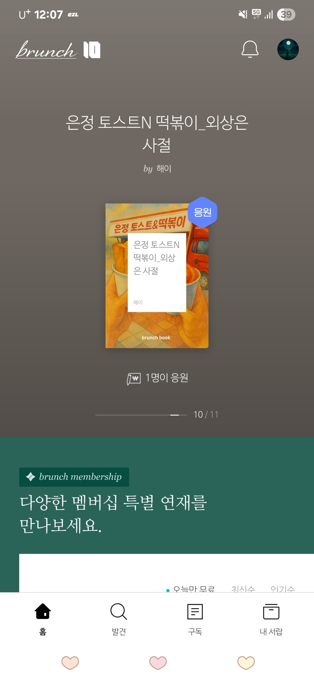 게다가 브런치에서는 내 글 <은정토스트&떡볶이>가 브런치활동 중 처음으로 메인에 올랐다.