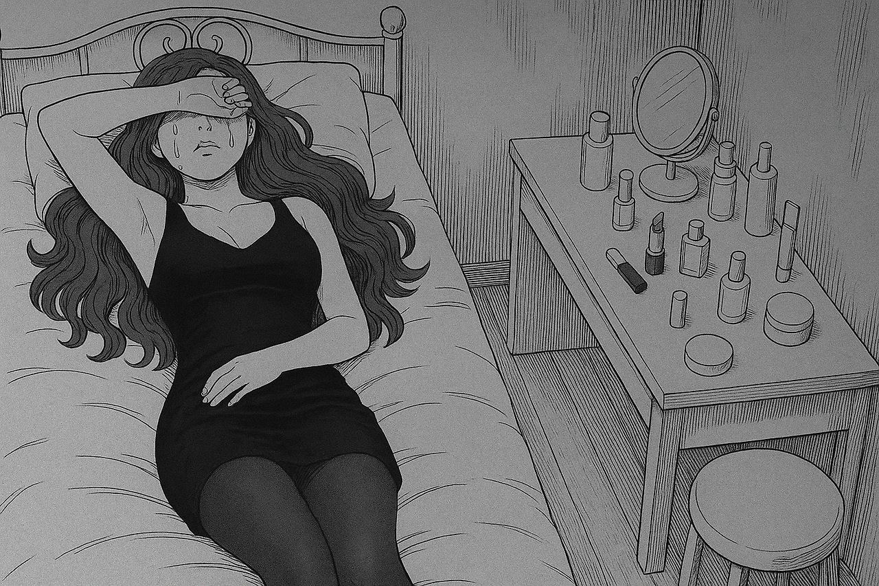방 안은 여전히 뒤죽박죽이었다. 싸구려 전신거울, 벗어던진 스타킹과 홀복, 구겨진 영수증과 텅 빈 소주병. 그녀는 거울 앞에 서서 클렌징크림으로 립스틱 자국을 지우고, 번진 마스카라를 닦아냈다. 거울 속 얼굴은 매번 다른 사람이었다. 술집에서 쓰는 얼굴, 택시 안에서의 얼굴, 파출소에서의 얼굴, 그리고 지금의 얼굴.