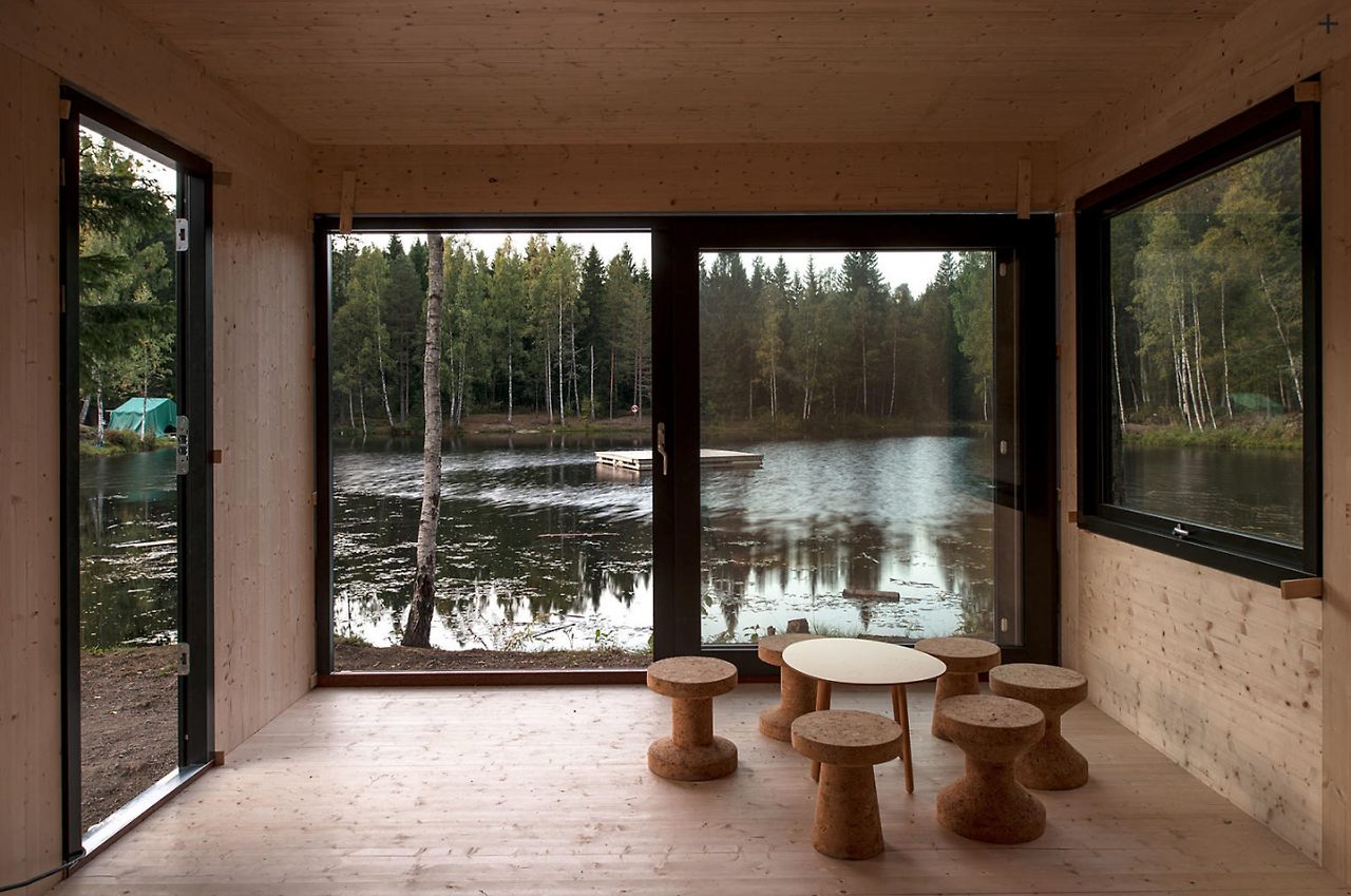 전통적으로 나무를 쌓아 올려 잔디를 지붕에 설치하는 방식을 모던하게 해석하여 디자인을 했다. 건축물 중간에 비어있는 공간을 두어 스키를 타고 와서 잠식 휴식할 수 있는, 외부지만 내부 같은 공간을 만들었다. 건물 외관을 전체적으로 빼곡하게 덮지 않아, 건물이 자연스럽게 자연의 일부로, 잘 스며들게 있게끔 연출을 하였다.