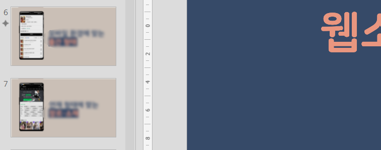웹소설이 무엇인지에 대해 이야기하는 아주 간단한 방식도 그렇고, PPT 속 핸드폰이 정말 핸드폰처럼 작동해서 수강자의 이해에 아주 효과적이더라. 소설만 천재적으로 쓰실 뿐만 아니라 PPT 작업 능력조차 대단했다. 거의 6년을 넘게 본 지인인데도 새로운 면을 발견해서 정말 진심으로 30분 정도를 감탄했다. 나도 피피티는 잘 만든다고 자부했는데…… 피피티 계의 스페셜리스트다. 하여간 마지막 날에 그분의 PPT의 템플릿을 급히 빌려왔다.