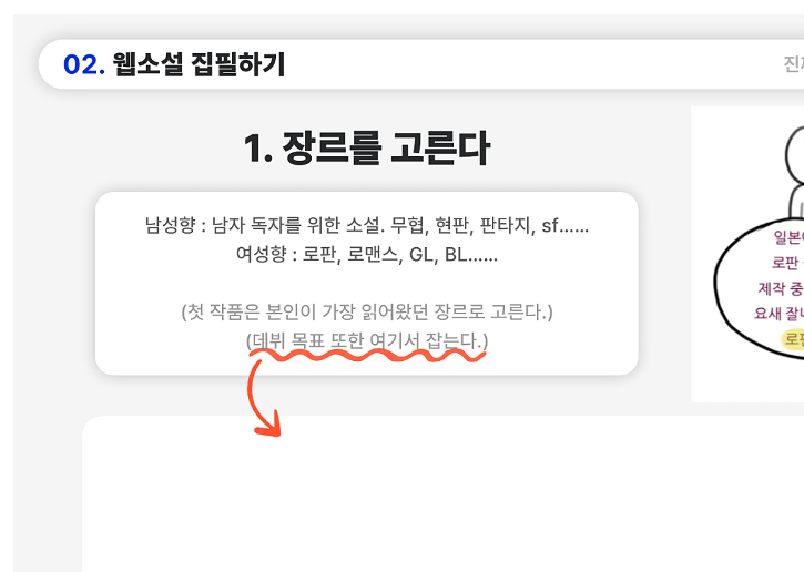 그래서 나는 새로운 수강생과 시작할 때 상대의 목표 장르를 잡고 간다. 이제는 워낙 데뷔 통로가 좁다 보니, 장르마다 데뷔하는 방법이 어느 정도 정해졌고, 난 그중에서도 '잘' 데뷔하기 위하여 수강생에게 목적지까지의 길을 안내하는 것이다.