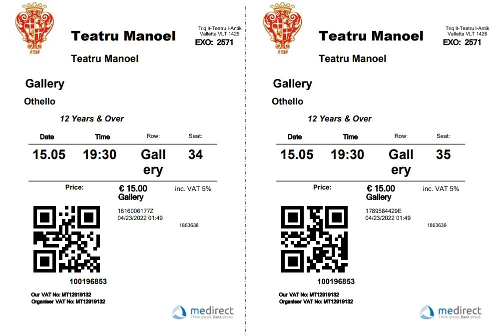 몰타의 경우 공연 등을 예매하고 나니 티켓이 PDF로 이메일로 전송됐다. 어떤 공연장이냐에 따라 PDF의 큐알(QR)만으로도 입장이 가능한 경우도 있었는데 마노엘 극장의 경우 PDF 티켓을 스마트폰에 저장한 것을 보여주니 종이 티켓으로 교환해 줬다.
