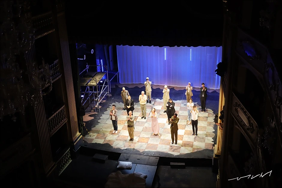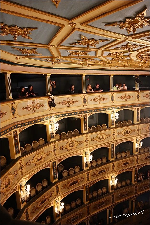 본격적인 공연이 시작되니 마이크 사용을 하지 않는데도 4층 꼭대기까지 배우들은 목소리가 잘 들리는 건 신기하게 느껴졌다. 우리나라 극장의 경우 마노엘극장 정도의 크기라면 핀 마이크가 없이 육성으로 관객들에게 전달되긴 힘들지 않을까 싶었다. 중세 시대에는 마이크 시설등이 없는 건 당연하니 그에 맞춘 설계였을 것이니 오히려 육성에 최적화된 공연장이겠다. 다만 거리가 다소 멀긴 했고 타원형의 극장이라 공연을 관람하기에 편한 좌석은 아니었다. 한 30분쯤 시간이 흐르면서는 좌석이 너무 불편해 아예 서서 관람하기도 했다. 그래도 무대 전체를 볼 수 있어 좋기는 했는데 자리가 많이 불편하니 친구들을 대신해 예매를 한 내 입장에서는 다소 미안했다.