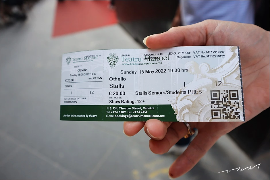 CNN이 선정한 세계에서 가장 아름다운 극장 중 하나인 마노엘 극장은 꼭 공연이 아니더라도 내부는 꼭 한번 보고 싶다고 생각했다. 마노엘 극장의 모습을 찍은 사진만으로도 그런 생각이 들었을 정도로 아름다운 극장이었다. 그리고 이왕이면 중세풍 가득한 곳에서 꼭 한번 연극을 한번 보고 싶었다. 몰타에 오자마자 마노엘 극장에서 어떤 공연이 열리는지 검색을 해보니 셰익스피어 4대 비극(Shakespeare's 4 tragedies) 중 하나인 오델로(Othello)가 상영될 예정이니 타이밍이 좋았다. 16세기에 중세 기사단들이 앉았던 마노엘 극장에서 오델로를 볼 것이라 생각하니 갑자기 약 300여 전의 시간으로 되돌아 간 느낌이 들었다. 게다가 몰타에서 보게 된 첫 공연이 셰익스피어라니!!! 절로 기대가 됐다.