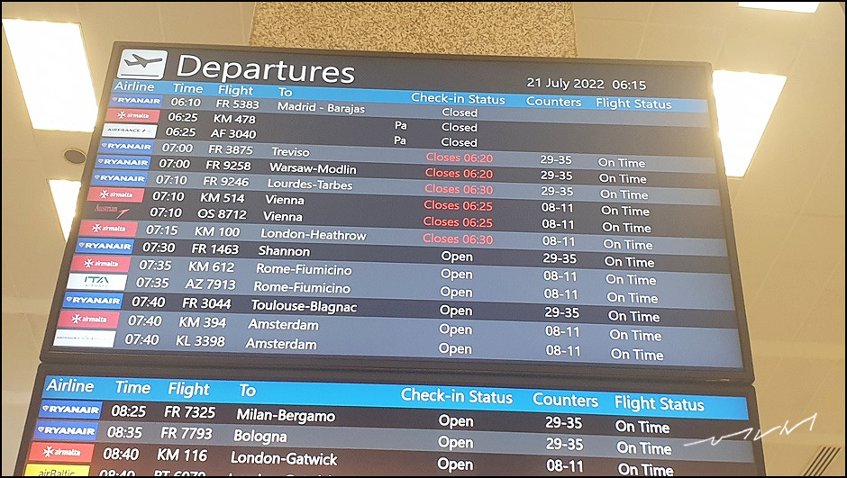 룸메이트의 외침에 눈이 번쩍... 알람소리도 놓쳤다. 룸메가 로마여행을 마치고 돌아 왔지만 나도 룸메도 바빠서 둘이서 얘기를 할 시간이 제대로 없었다. 떠나기 전날이 돼서야 둘이서 맥주를 두고 몰타 소회를 나누며 이런저런 이야기를 할 수 있었고 그러느라 새벽 1시가 넘어서 잠이 들었다. 가져갈 짐은 다 쌌고 두고 갈 짐 정리를 좀 더 해야 하는데 너무 피곤해서 아침에 일어나서 할 생각이었다. 비행편이 7시 15분이었기에 새벽 4시 30분에 울리도록 알람을 2개나 맞춰 놓고 잤는데 그동안 너무 피곤했던 탓에 알람을 듣지를 못했다.