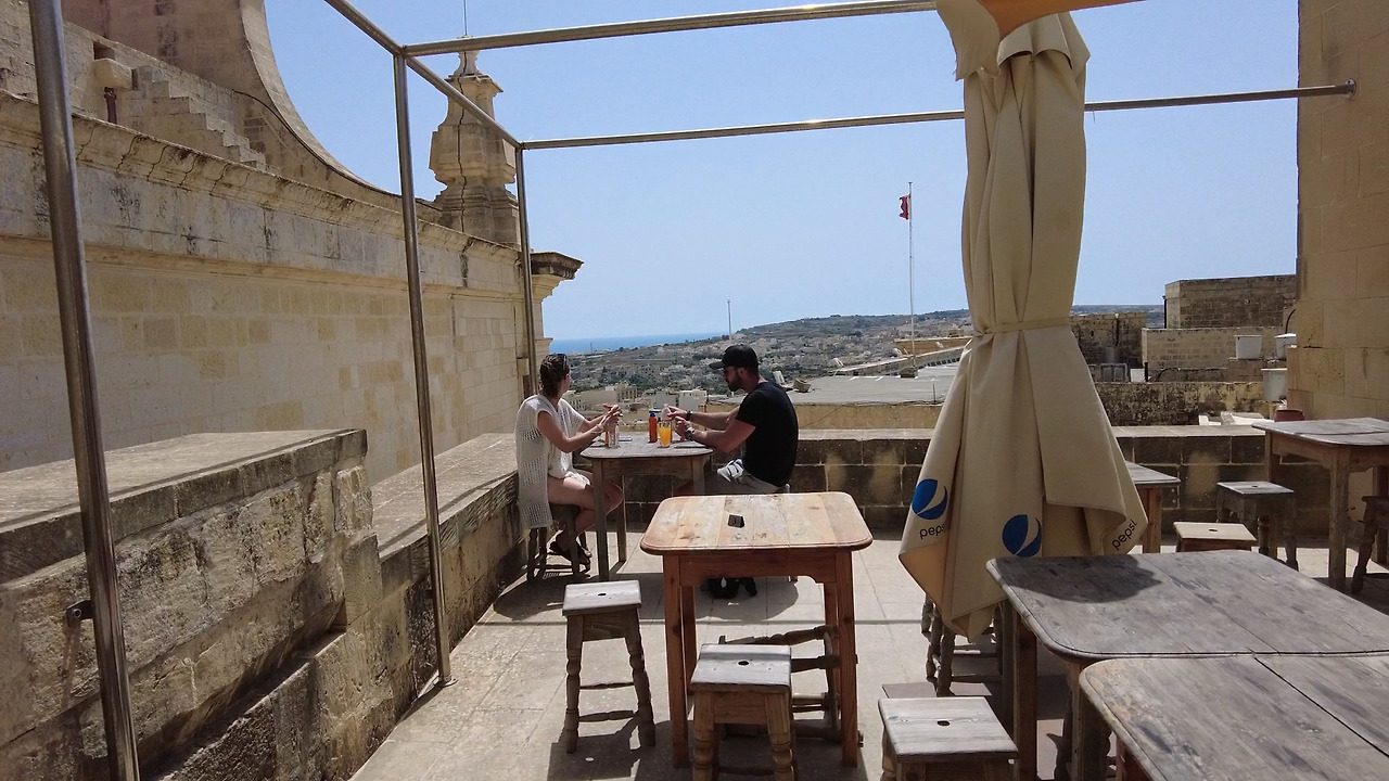 날도 뜨거운데 성채를 한 바퀴 돌았더니 떡실신 직전이었다. 잠시 목이라도 축여야겠기에 적당한 곳을 찾아다 '루프트 탑 테라스 오픈'이라는 카페를 발견했다. 당연 가봐야지. 3층의 건물로 2층까지는 평범한 건물이었는데 몰타 풍의 인테리어로 장식해 놓았다.