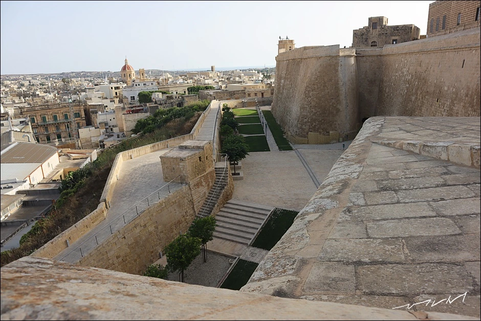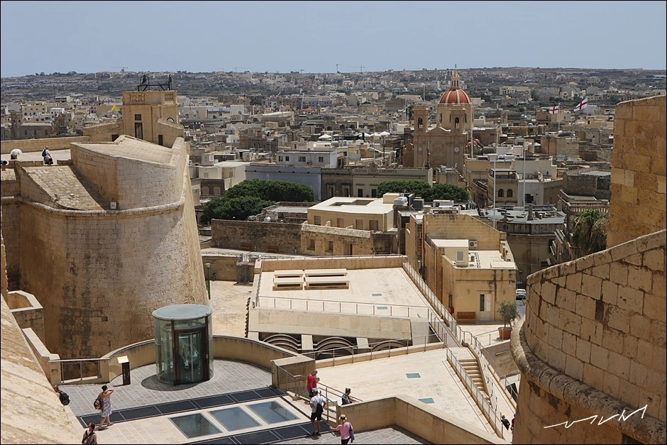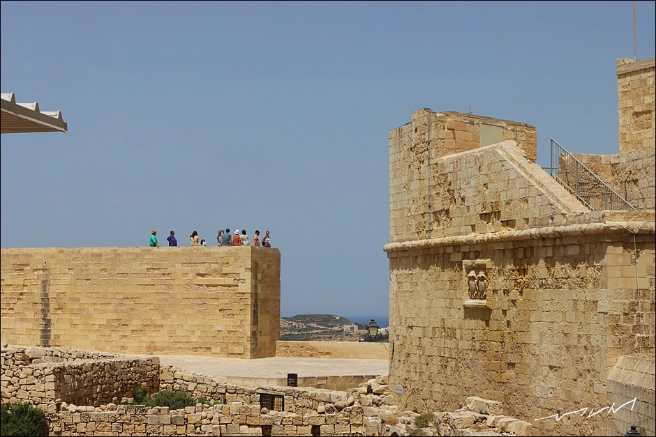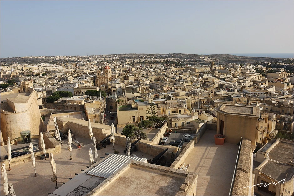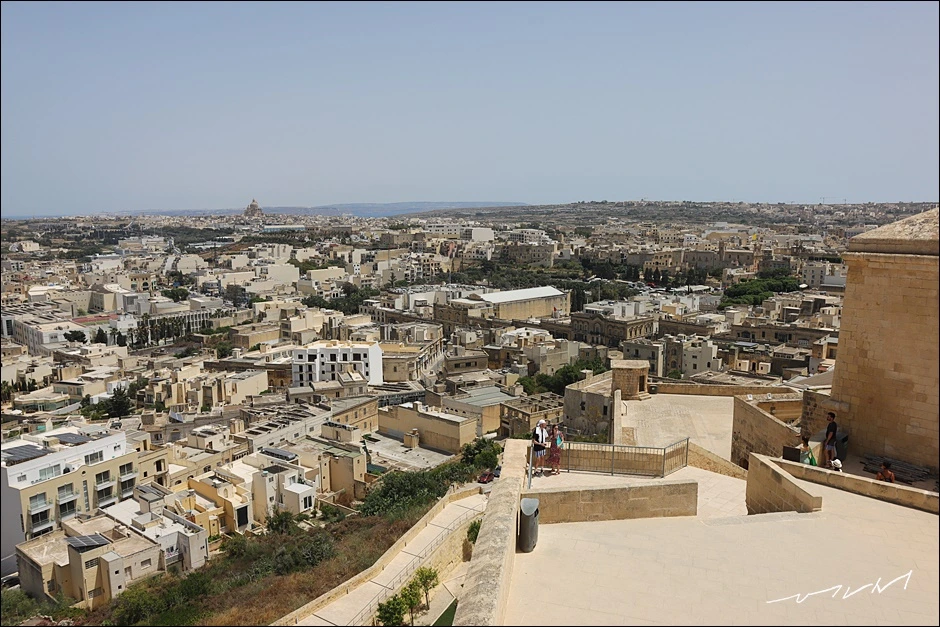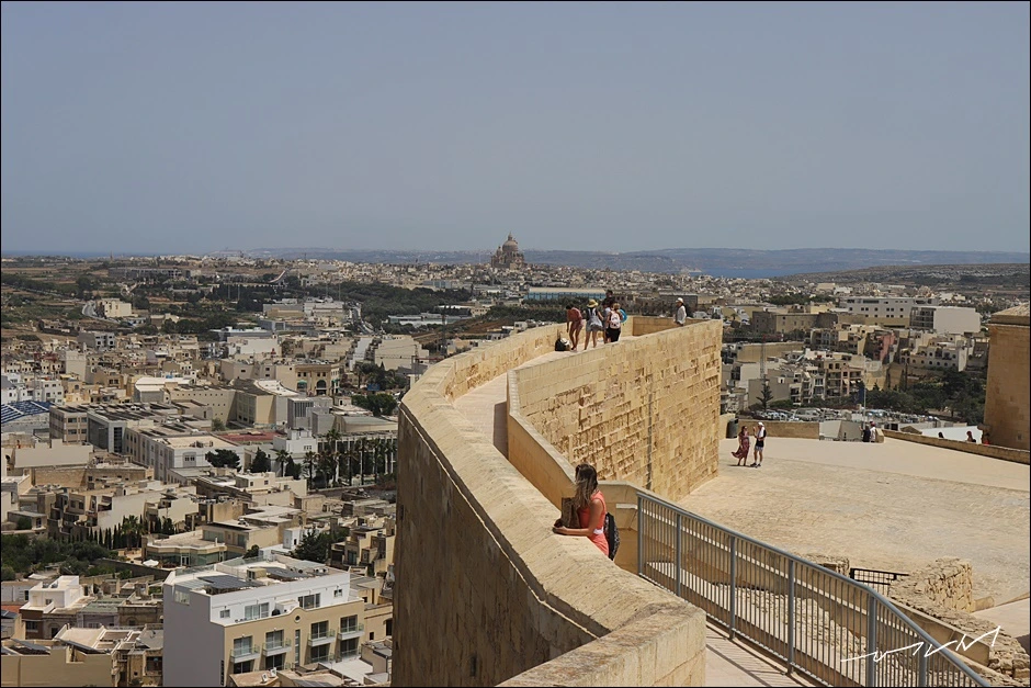 성채에 서면 누구라도 연신 사진을 찍을 수밖에 없다. 성채가 단차가 있다 보니 성채를 걷고 있는 사람들도 풍경이 되어 준다. 몰타를 대표하는 요새인 발레타, 비루구, 임디나의 성채들과는 묘하게도 다른 느낌인데 요새가 아니라 작은 소도시가 내려다 보이는 전망대에 선 기분이 들었다. 한쪽은 도심의 풍경이, 반대쪽은 전형적인 목가적인 풍경이 묘하게 대비되는 고조섬이다. 같은 풍경은 어디에서 보느냐에 따라 달라지는 느낌도 감상포인트였다. 빅토리아 가장 놓은 언덕에 지어진 덕분에 따로 전망대를 갈 필요가 없을 정도였다.