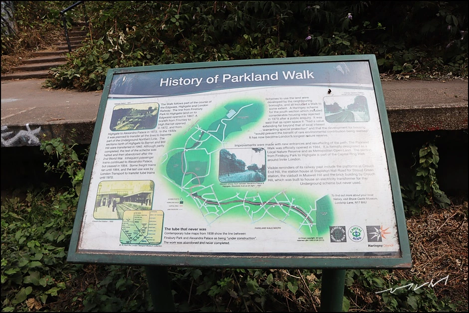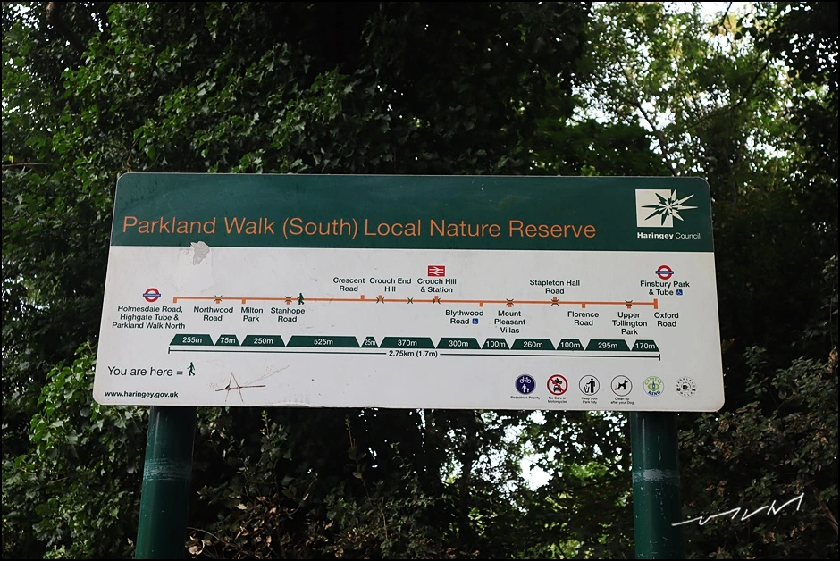파클랜드 워크는 총길이 5km 남짓인데 본선 구간인 핀스버리 파크에서 하이게이트까지가 2.75km이고 지선 구간인 하이게이트에서 머스웰까지 2.25km다. 철도 노선이 그래도 산책로가 된 셈인데 기차가 다니지 않는다고 해서 이곳이 개발되지 않고 그대로 산책로가 된 건 런던이라서 그런 것일까 궁금했다.