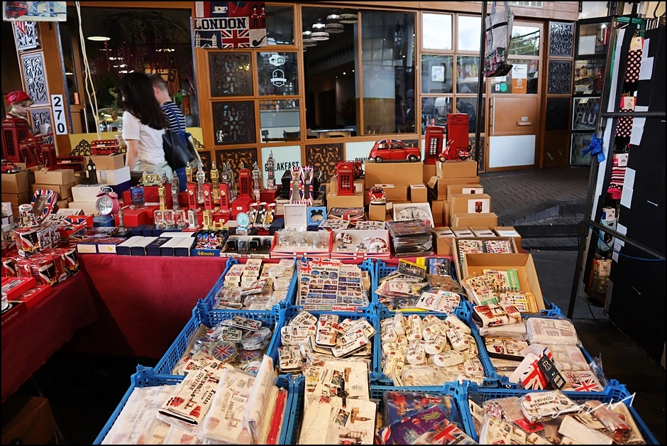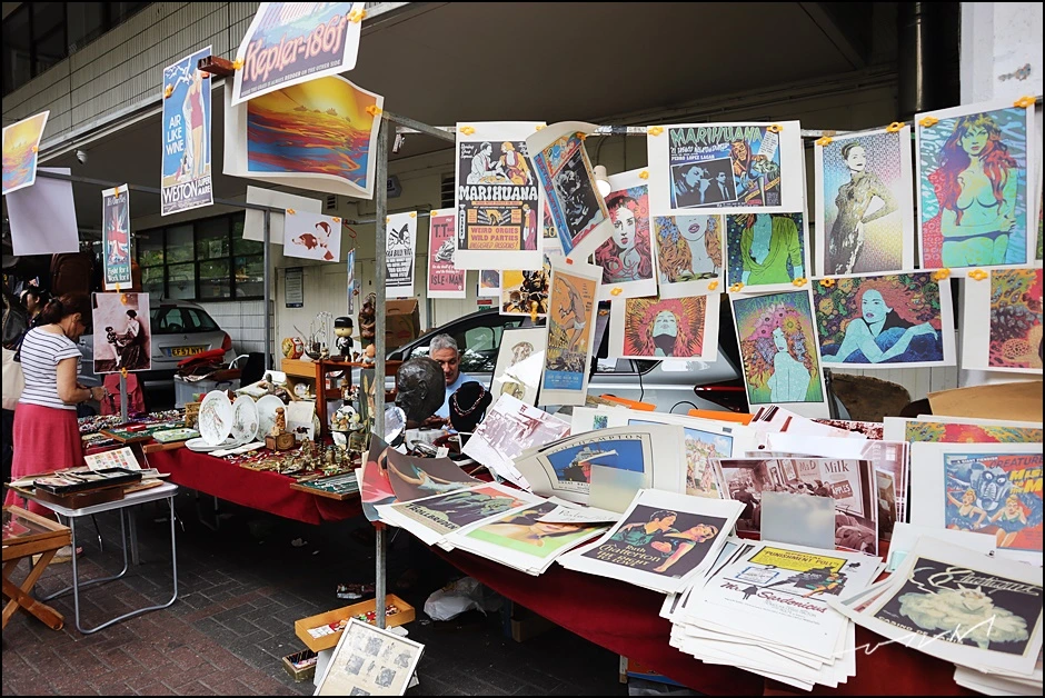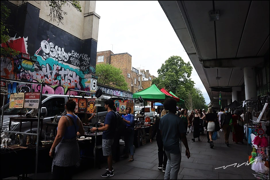 길을 헤맨 탓에 집을 나선 지 2시간이 훌쩍 지나서 도착한 래드브로크 그로브역이다. 역사를 나서 정면 위쪽으로 다리가 보이는데 그곳이 포토벨로 로드 마켓 시작이었다. 로드 마켓이란 이름답게 다리 밑으로 노점장이 줄지어 늘어서 있다. 포토벨로 로드 마켓은 골동품 혹은 빈티지 물건이 많다고 알려져 있는데 그것 외에도 구제옷, 수제품, 일용잡화, 과일과 채소, 기념품 등 온갖 잡동사니 물건이 다 있었다. 포토벨로 로드 마켓과 노팅힐에 있는 가게와 노점상을 합해 대략 2천 개가 넘는다고 하니 없는 걸 찾는 게 더 빠를 수도 있겠다.