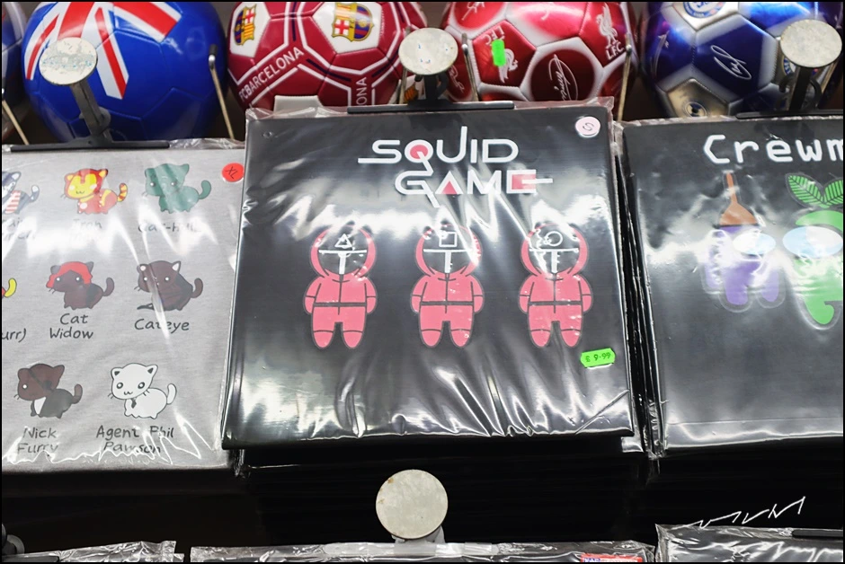 관광객들이 워낙 많이 찾는 곳이라 다양한 가게들이 많았지만 기념품을 판매하는 곳이 점점 늘어나고 있다는 느낌이었다. 기념품 숍은 가게, 노점 할 것 없었고 종류도 다양했다. 기념품 셔츠가게에서는 오징어 게임 티를 파는 곳도 있었다. 오징어 게임 티까지 팔 정도니 K-컬처 대단하구나 싶었다.