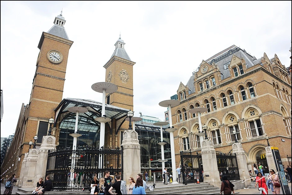 지나가는 경찰관에게 근처에 지하철역이 어디에 있는지 물으니 내가 쳐다보고 있는 고풍스러운 건물을 가리키며 '지금 네가 있는 곳이 역사야'라고 하는 것이 아닌가. 뭐라고요? 이 건물이 역이라고요!!!!!! 누가 봐도 기차역이고 지하철역인 우리나라와 달리 외관만 봐서는 역사 건물일 것이라고 도무지 상상할 수 없는 런던의 기차역은 매번 감탄의 연속이었다. 역사 안으로 들어가니 엄청난 규모였다. 리버풀 스트리트 역은 런던 중앙 철도 종착역이면서 케임브리지, 노리치, 런던 동부와 잉글랜드 동부지역, 스탠스테드 공항을 운행하는 열차들의 종착역이었다. 런던에서 지낼 동안 타보지 않을 기차노선이라 이 부근으로 올 일이 없었을 텐데 길을 헤맨 덕분에 눈도장을 찍는다.