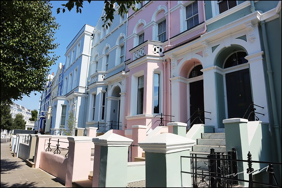 이제 본격적으로 노팅힐 거리를 걷는다. 노팅힐은 '힐'이라는 지명처럼 노팅힐 게이트까지 걷는 길은 계속 오르막이다. 노팅힐 하면 파스텔 톤으로 칠해진 집들이 대표사진으로 꼽히는데 이곳도 한때는 슬럼가였다고 한다. 젠트리피케이션 문제가 불거지면서 재개발이 되면서 집들을 파스텔 톤으로 칠하고 새 단장을 했다고 하는데 지금은 젊은 신흥 부자들이 많이 살고 있고 살고 싶어 하는 지역으로 완전히 탈바꿈을 했다고 한다.