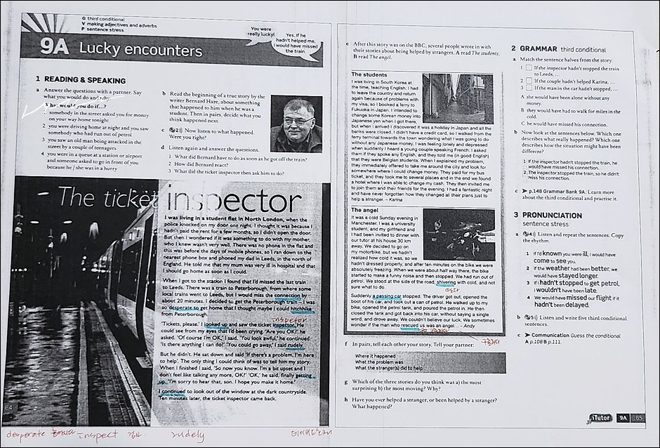 처음 수업을 담당했던 선생님이 준비해 오는 자료들은 난이도가 꽤 있었다. 때로는 난이도가 조금 낮은 날도 있었지만 그렇다고 내게는 쉽지 않았다. 주로 리딩 위주의 수업이었는데 모르는 어휘도 수두룩하고 어휘를 안 다고 해도 문장 해석이 제대로 안 되니 내용 파악도 힘든데 전후에 무슨 일이 있었을지 유추해서 말하라고 하니 미칠 노릇이었다. 이 선생님의 경우 모든 학생 한 명 한 명 돌아가면서 무조건 말을 시키는 선생님이었기에 예습도 할 수 없는 수업은 스트레스가 이만저만이 아니었다.