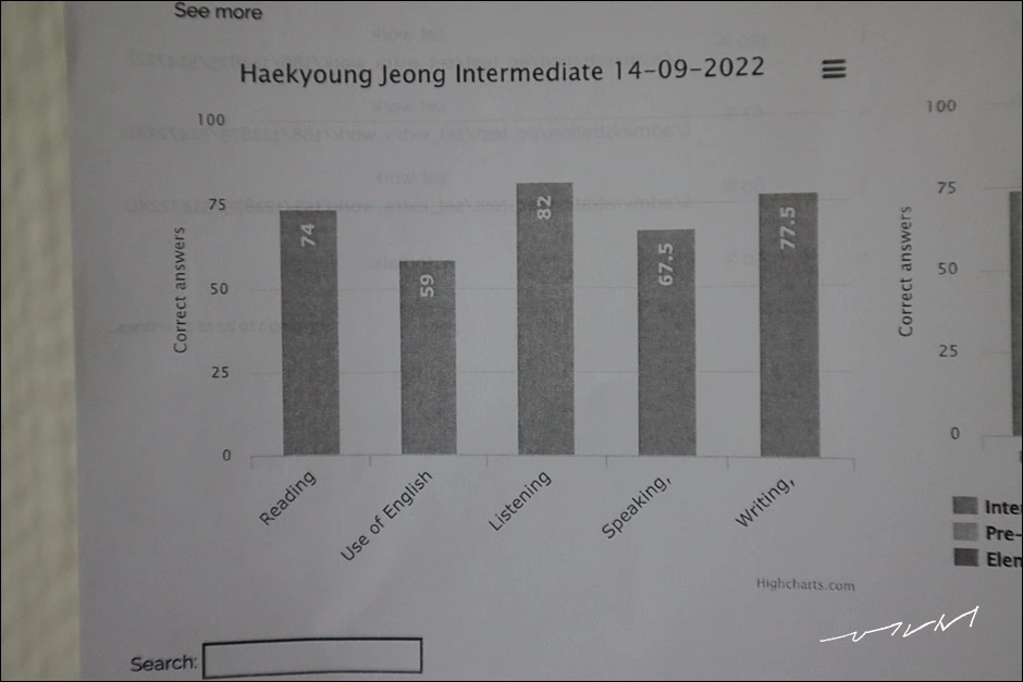 다음 날 어학원을 가니 다니엘이 내 시험결과지를 출력해 놓고 기다리고 있었다. 런던의 경우 몰타와 달리 선생님에게 시험을 보겠다고 말할 필요 없이 EC 런던 홈페이지에 4주가 지나면 시험 버튼이 생성되어 있었다. 몰타에서는 시험을 선생님이 채점을 하고 수업시간에 결과를 알려주는데 런던에서는 학업관리만 담당하는 선생님이 다니엘의 소관이었다.