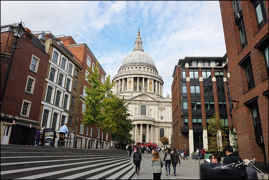 개인적으로는 밀레니엄 브리지를 건너서 만나는 세인트폴 대성당도 좋았지만 런던 금융가인 시티오브런던 안의 뱅크 지역의 건물 사이로 보이는 세인트폴 대성당이 더 인상적이었다. 네모난 건물사이로 동그랗게 보이는 웅장한 돔이 주는 긴장감이라고나 할까. 시티오브런던은 빽빽한 고층 빌딩이 많은 지역인데도 건물과 건물사이를 걷는 색다른 재미를 느끼게 하는 곳이었다.