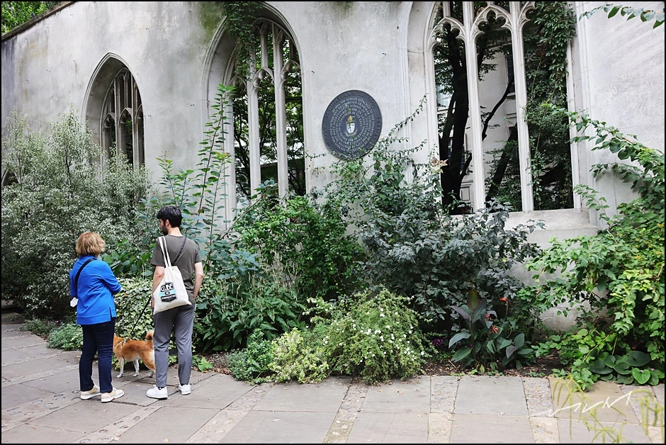 교회옆 작은 문이 하나 있었는데 건물 전체가 식물로 뒤덮여 있어 그곳이 정원인 줄도 처음에는 몰랐다. 아주 한적한 곳인데도 그 문으로 꽤 많은 사람들이 드나들고 있어 들어가 보니 이렇게 멋진 정원이 숨어 있었다. 이곳은 영국 성공회 교회로 교회 건물은 세계 2차 대전과 런던 대화재 때 많이 훼손된 후 일부 재건되었고 정원은 공공정원으로 개방하고 있는 곳이었다.