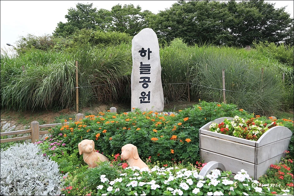 온통 초록색의 푸른 띠가 일렁거리는 하늘공원으로 가보자.