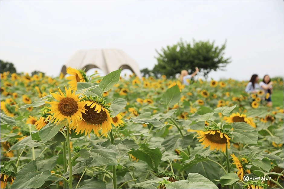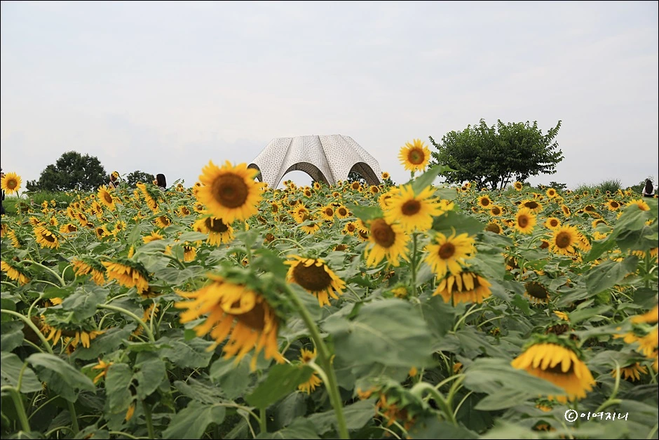 해바라기가 핀 풍경을 만나기 위해서는 하늘공원 입구에서