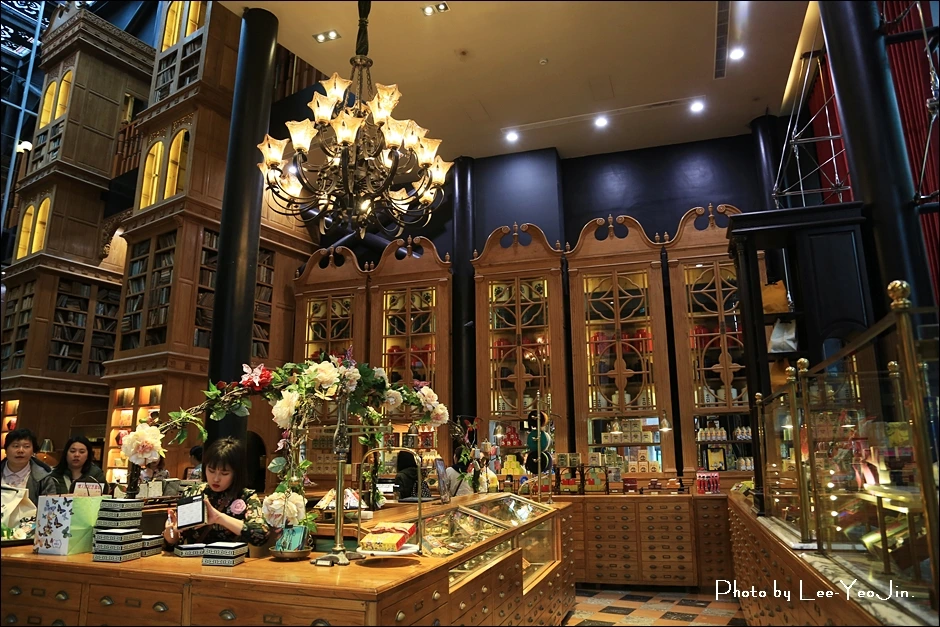 궁원 안과에서는 볼 수 없었던 와플을 만드는 모습도 볼 수 있고 와플을 베이스로 한 아이스크림도 있고 커피도 있어 선택의 폭이 더 다양했다. 자리를 맡고 주문을 하고 기다리는 사이 매장 구경을 나섰다. 안쪽에는 고급스러운 패킹으로 구성된 상품들이 진열돼 있는데 한쪽 부분의 타일 장식이 좀 독특하다 싶어 기웃거리고 있으니 직원이 미소를 띠며 조금 자세히 보라고 한다. 뭐가 있나 싶어 허리까지 숙여가며 뚫어져라 쳐다보니 어머나! 이게 뭐야! 동전이잖아!!! 단순한 타일 장식인 줄 알았는데 모두 동전을 활용한 것이 아닌가. 정말 버릴 것 하나 없이 디테일 하나 놓치지 않고 은행의 흔적을 이렇게 알뜰히 재현해 놓다니 새삼 놀라웠다. 이때만 해도 시간이 녹아 있는 옛 것을 이용해 현대적인 세련된 감각을 입고 새로운 문화를 만들어 내고 있는 것이 타이완을 설명하는 또 하나의 문화적 특성이라곤 전혀 생각하지 못했다.