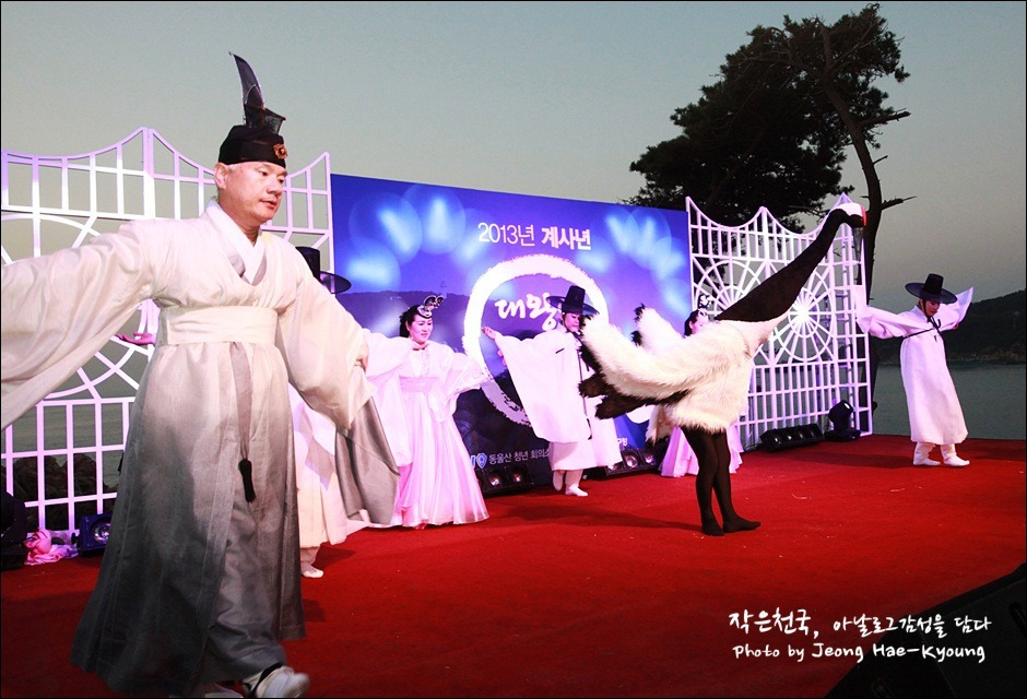 대왕암 일출 행사에서 가장 인상적이었던 것은 2013년의 울산학춤이다. 학춤 하면 '동래학춤'이 유명한데 울산도 학춤이 있다. 울산은 '학(鶴)', 두루미로 불리는 철새가 옛날부터 많이 찾아오는 곳으로 지명에도 '학(鶴)'이 굉장히 많이 들어간다. 울산학춤은 신라 시대 울산과 관련한 전설에서 유래한 춤으로 학의 여러 가지 모양을 춤으로 형상화했는데 민족의 정서와 혼이 내재된 가장 한국적인 전래 춤으로 인정받고 있다. 실제로 울산 학춤을 본 적은 한 번도 없었는데 학의 고고한 몸짓이 호국의 얼이 서린 대왕암과 잘 어우러진다는 생각을 했었다.