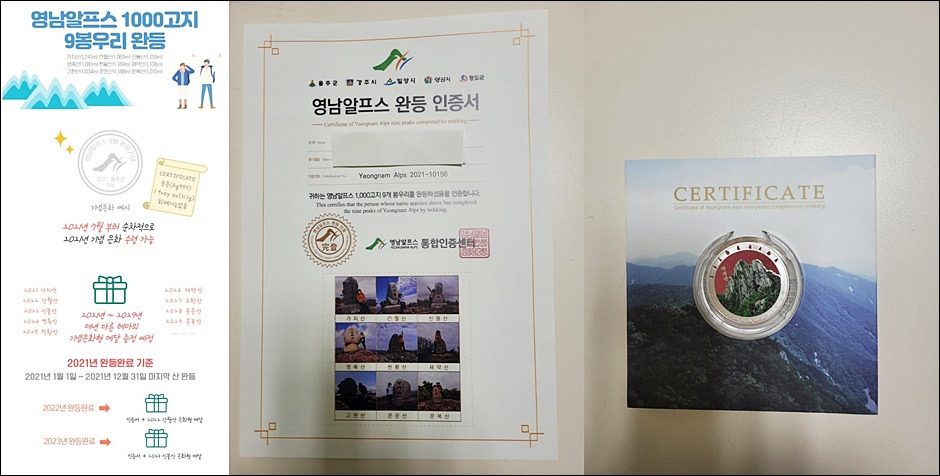 울주군에서는 2022년에도 3만 개 한정으로 은화를 제작할 예정에 있다고 한다. 은메달이 뭐라고 이걸 받고 나니 친구도 그렇고 나도 그렇고 '야 우리 2022년에도 인증하자'며 마음이 벌써 앞선다. 허나, 3월에 지중해로 출국이 예정되어 있어 아무래도 올해는 인증을 하기는 좀 힘들 것 같다. 그럼에도 불구하고 2021년에 가장 잘한 일이 바로 '영남알프스 9봉 완등'이다. 산을 오른다는 것은 쉬운 일만은 아니었지만 산을 오르면 오를수록 '이렇게 아름답고 멋진 산을 가지고 있는 울산이구나'싶어 새삼스러웠다.
