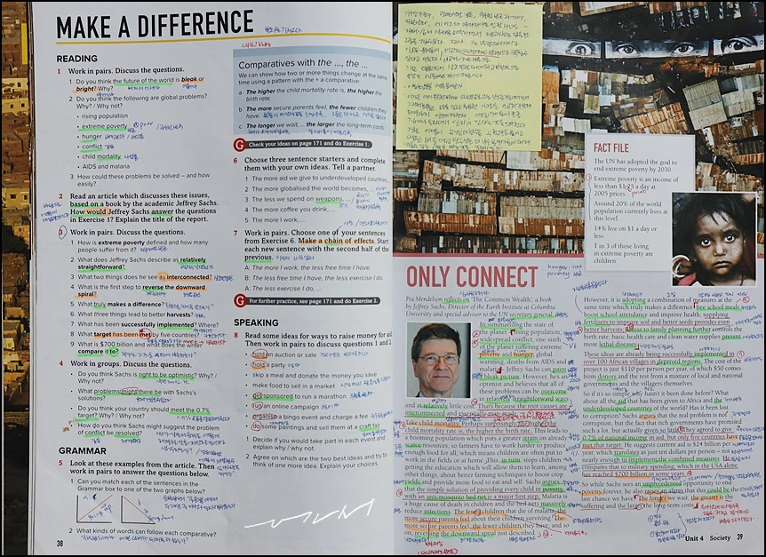인터미디어트 수업에서 가끔씩 접했던 이디엄을 본격적으로 배우기 시작했다. 문법의 경우도 일반적인 문법을 배우는 정규수업 외에 추가로 들었던 문법 수업에서는 영어문학작품에서 문학적인 수사가 필요한 문법을 공부했다. 정규수업도 그렇고 추가로 듣는 수업도 인터미디어트에서는 한 번도 배우지 않았던 내용들로 구성된 수업이었다. 그 말은 내가 지금껏 해왔던 공부보다 모든 면에서 훨씬 더 많은 시간과 노력을 들여야 한다는 의미였다.