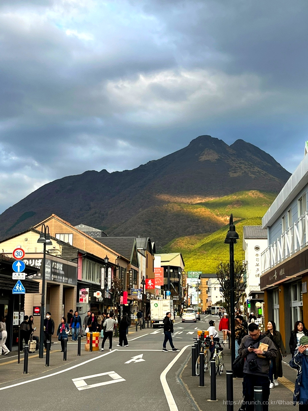 버스로 두 시간을 달려 유후인 역에 도착했다. 터미널을 나서자마자 하늘을 채우듯 묵직하게 선 유후 산을 보며, 유후인 어디에 있든 저 산의 시선에서 벗어날 수 없다던 말을 실감할 수 있었다. 사람은 많았지만 동네 자체는 높은 건물 하나 없이 소박한 느낌이라 참 좋았다. 료칸 체크인까지 시간이 제법 남아서 우리는 역 근처 코인로커에 캐리어를 넣어두고 근방을 돌아보기로 했다.