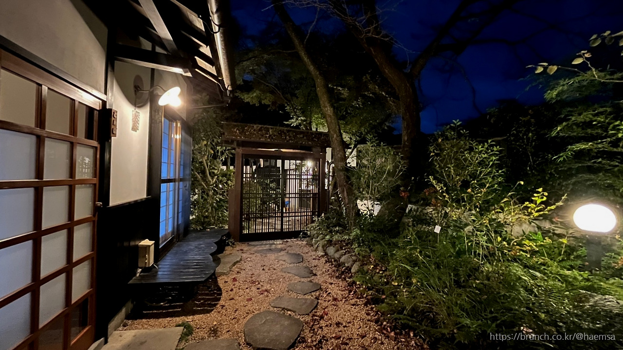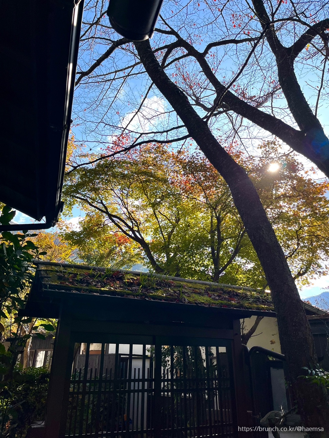 아침식사 후에도 가볍게 온천을 즐겼다. 객실을 나서며 영 아쉬워서 정원에 있는 작은 의자에 앉아 있는데 현관 너머로 보이는 커다란 단풍나무에 햇빛이 정말 예쁘게 내렸다. 가을철 료칸에 대한 막연한 로망이 있던 나에게 이곳은 기대를 배신하지 않는 경험을 선사한 곳이었다.