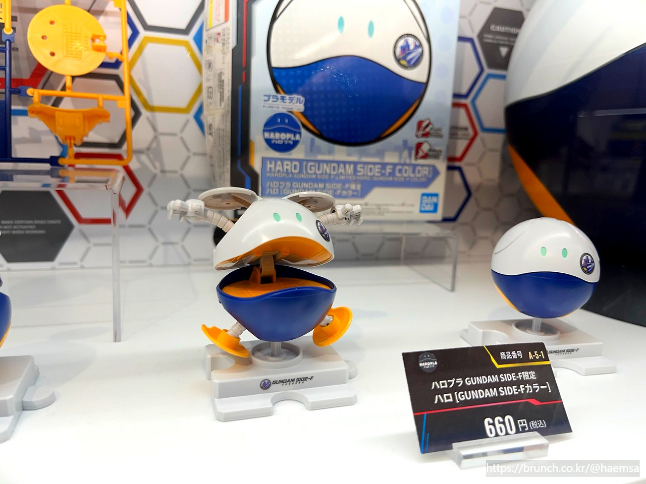 이번 전리품은 어디 들를 때마다 꼭 하나씩 데려오는 하로프라. 나는 하로를 정말 좋아해서 기본 컬러부터 건담베이스 컬러, 요코하마 컬러, 키티 한정, 눈에 불이 들어오는 피규어라이즈 메카닉스까지 웬만한 귀여운 버전은 모두 집에 모셔두고 있다. (야구에 빠진 지금은 베이스볼 한정판을 찾아 헤매고 있다.) 사이드F에도 한정 컬러 버전이 있었어서, 다른 수많은 유혹들을 물리치고 하로 하나만 데려오는 것으로 소비를 끝낼 수 있었다.