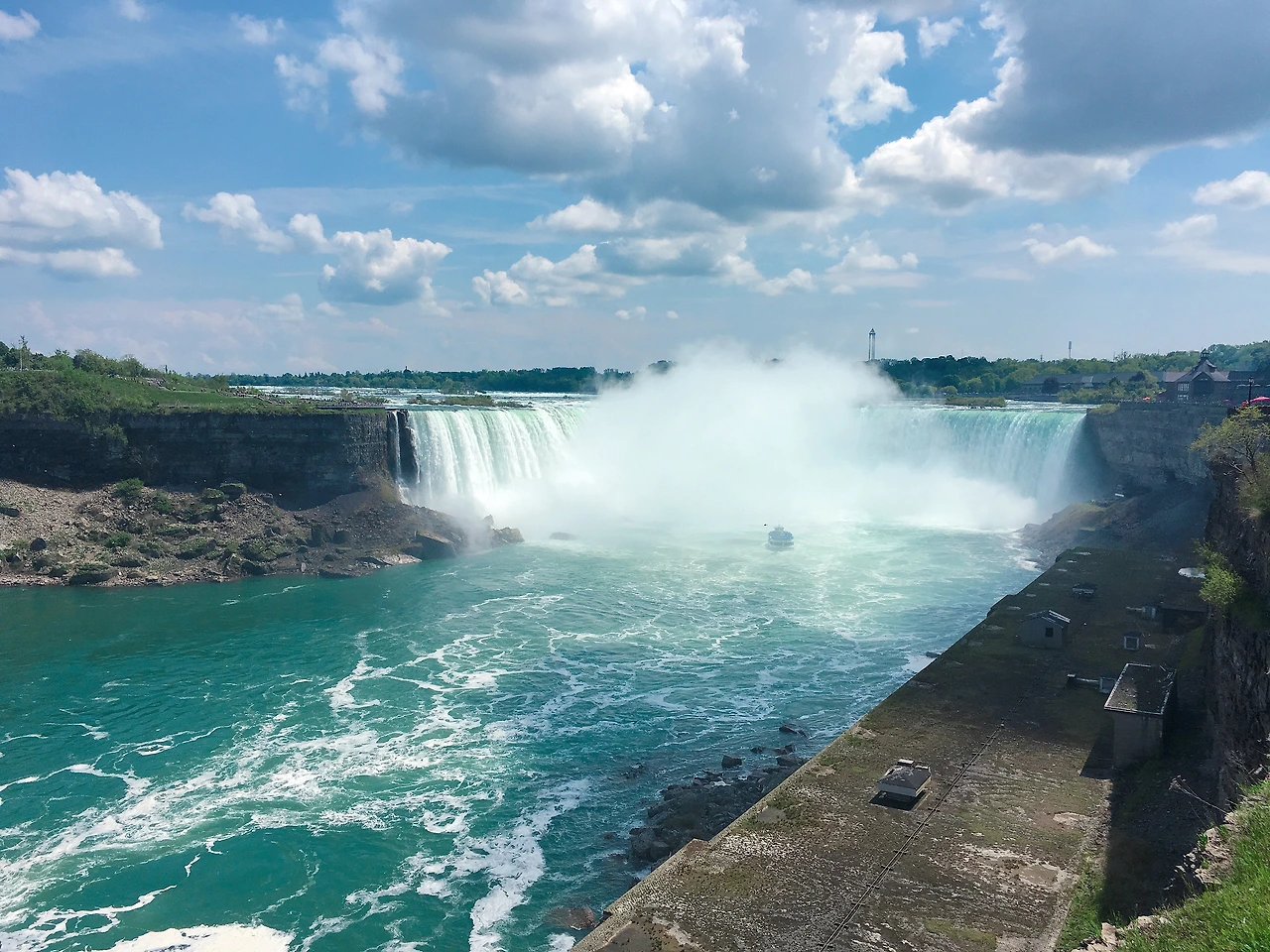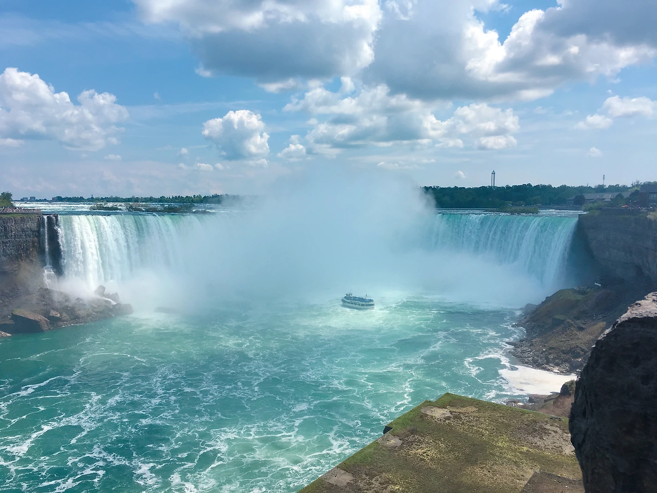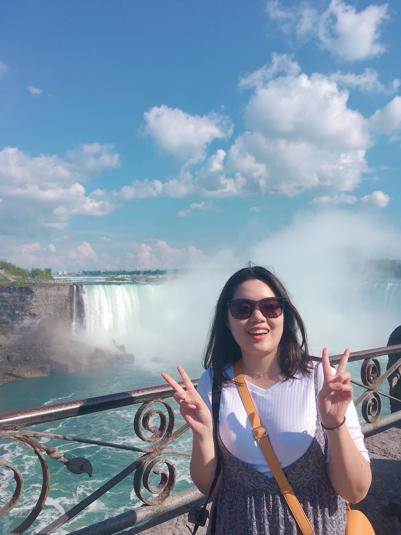 나이아가라에서 만큼은 달랐다. 정말 '경이롭다'도 느껴지는 이 광경을 제대로 담지 못하면 정말 두고두고 후회할 것 같았다. 계속 폭포 주변을 맴돌면서 사진 찍어주세요가 영어로 뭐였지? Could you take...? 이렇게 시작하는 말이었나? Can you take a picture for me? of me? 괜히 영어 핑계를 대면서 망설이고 있었다. 사실은 휴대폰만 내밀면 알아서 찍어주지 않는가? 그래 영어는 어떻게든 되겠지, 그러면 누구한테 찍어달라고 할까? 물색에 나섰다. '진짜 이거 훔쳐가면 난 망하는 거야ㅜㅜ 안전한 사람, 안전해 보이는 사람 없나?' 매의 눈으로 물색한 결과 유모차를 끌고 있는 젊은 부부에게 부탁을 했다! 이거 하나 부탁하는데 거의 15분 넘에 걸으며 고민했다. 엄청난 내적 갈등! 유모차를 끌고 있던 젊은 부부의 아내분이 내 사진을 찍어줬고 정말 마음에 드는 사진을 얻게 되었다.