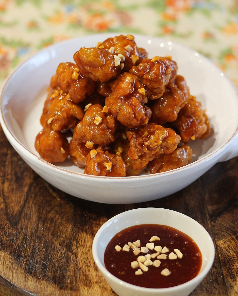 우리 닭강정에 얽힌 유명한 일화가 있다. 닭강정은 밑간에 재운 닭고기에 얇은 튀김옷을 입혀 동글동글 한 입 크기로 바삭하게 튀겨낸다. 매콤 달콤한 닭강정 소스는 따로 끓여 완성한다. 닭강정 소스를 닭고기에 묻혀 버무려 가져가면 아무래도 튀김이 금방 눅눅해질 수 있기에, 닭강정은 후라이드 상태의 고기 따로, 소스 따로 가져가시게 된다.