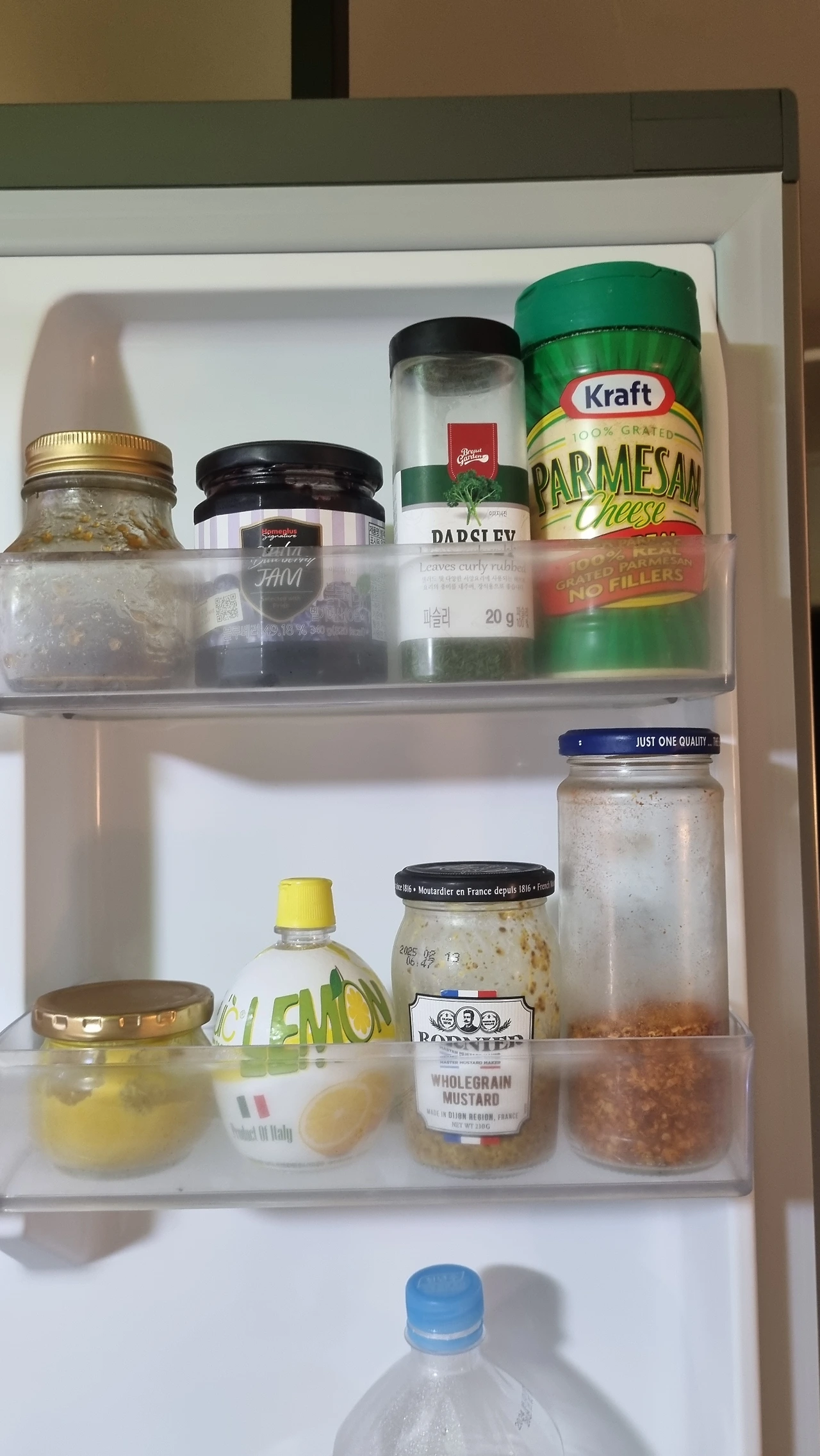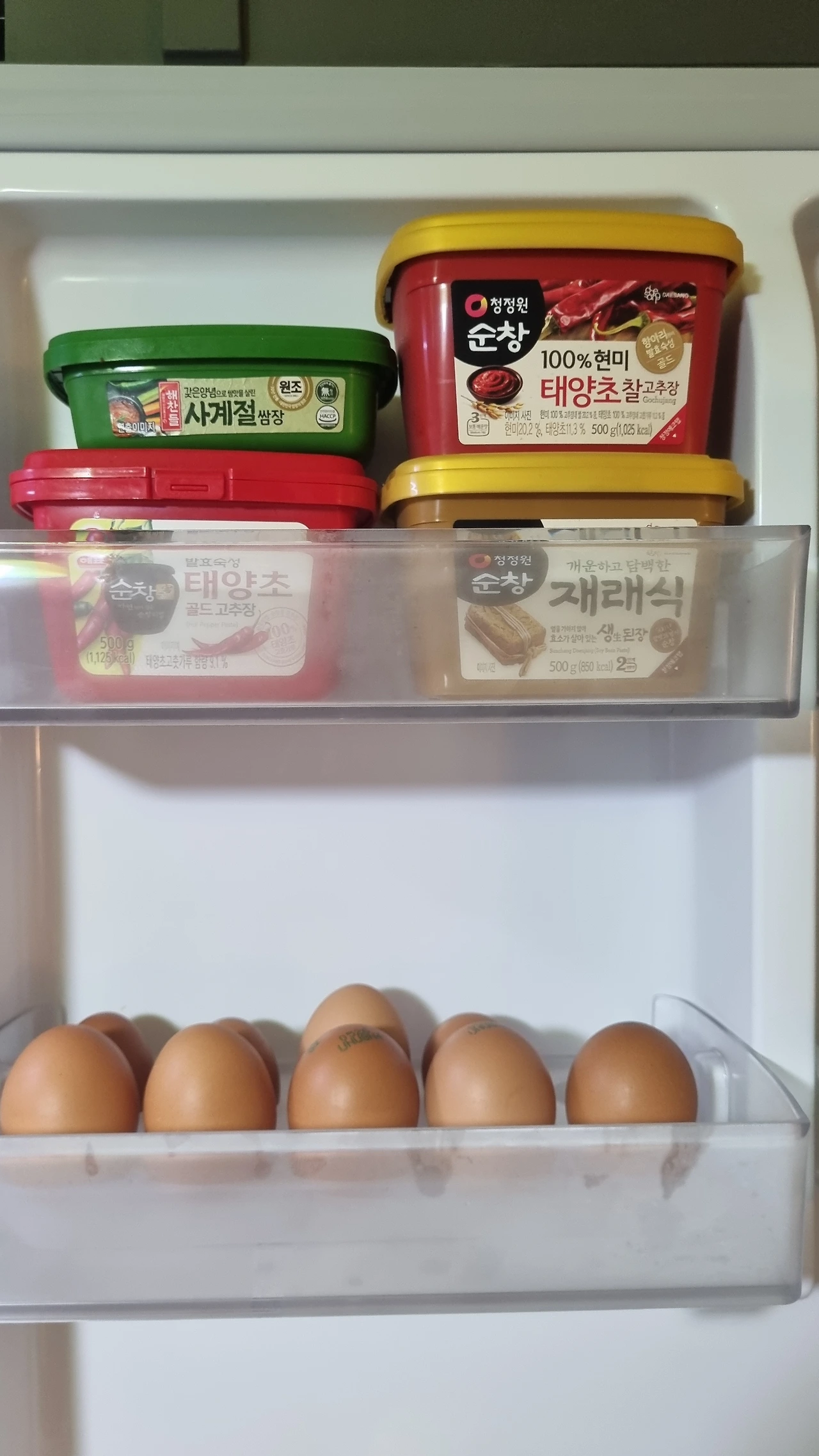이외에 항상 냉장고에 두는 음식이라면 계란, 버터, 고추장, 된장, 그리고 레몬즙, 머스타드와 같은 서양 소스들, 가끔 쪼가리 빵에 발라먹기 좋은 과일 잼과 페스토 같은 소스들이 전부다.