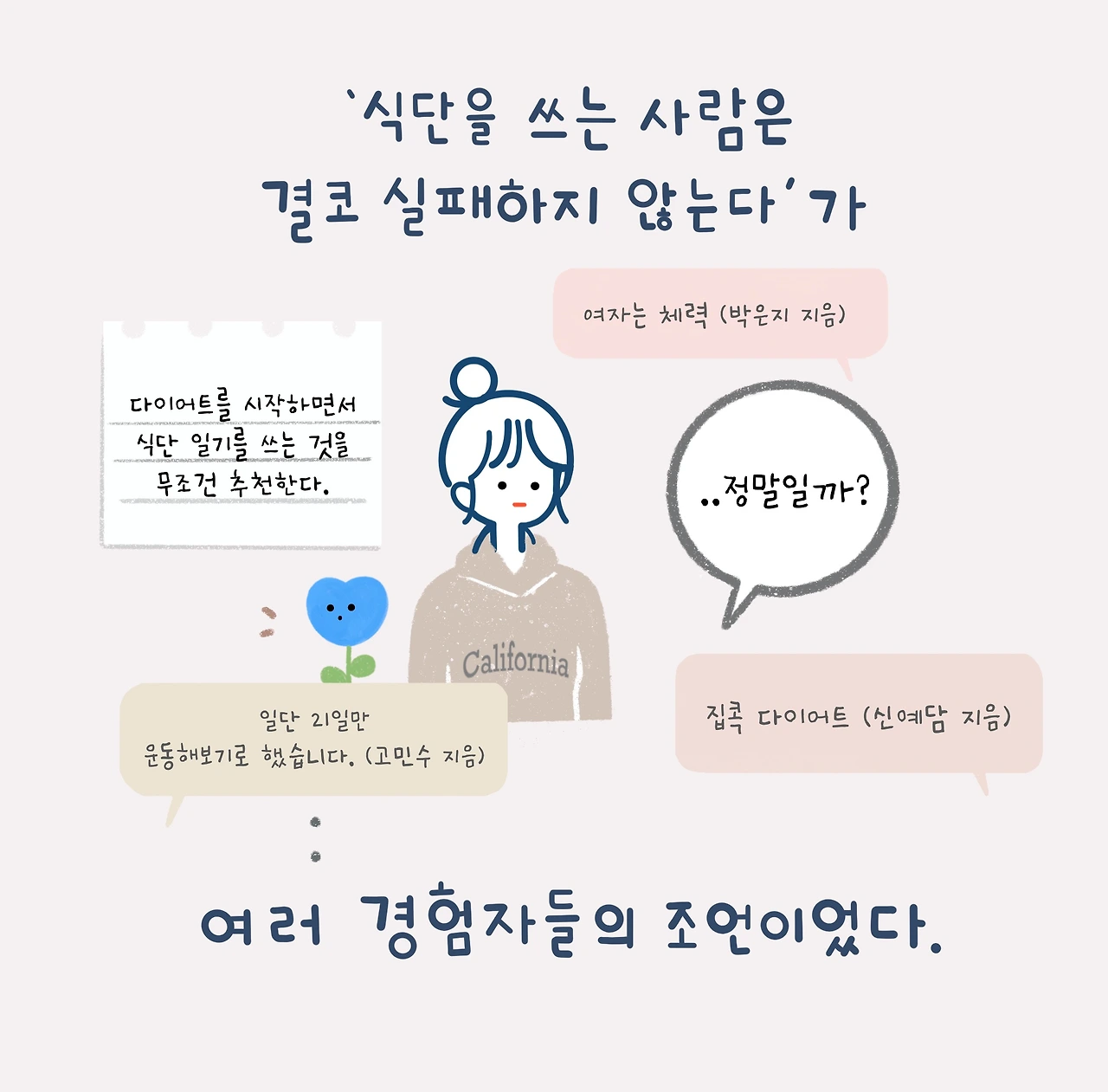 이번 다이어트를 시작하면서, 실패를 반복하고 싶지 않은 마음에 몇 권의 다이어트 책을 읽었다. 다이어트의 경험과 추천하는 몸 관리 방식은 조금씩 달랐지만, 모두 하나같이 언급하고 있는 것은 바로 '식단 쓰기'였다.