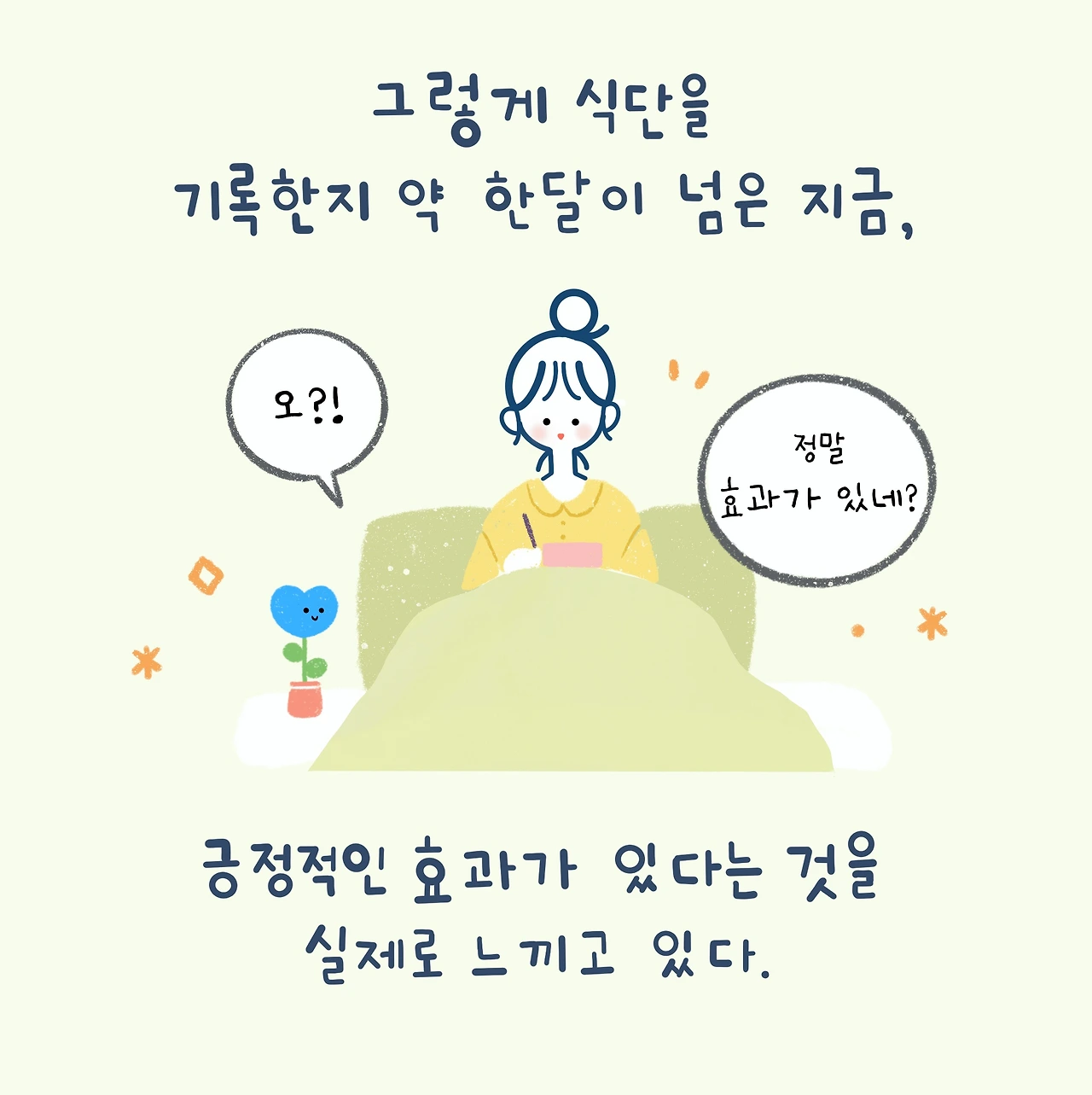그렇게 식단 기록을 시작한 지 오늘까지 약 40여 일, 실제로 경험해본 식단 기록의 효과는 기대 그 이상의 것이었다.