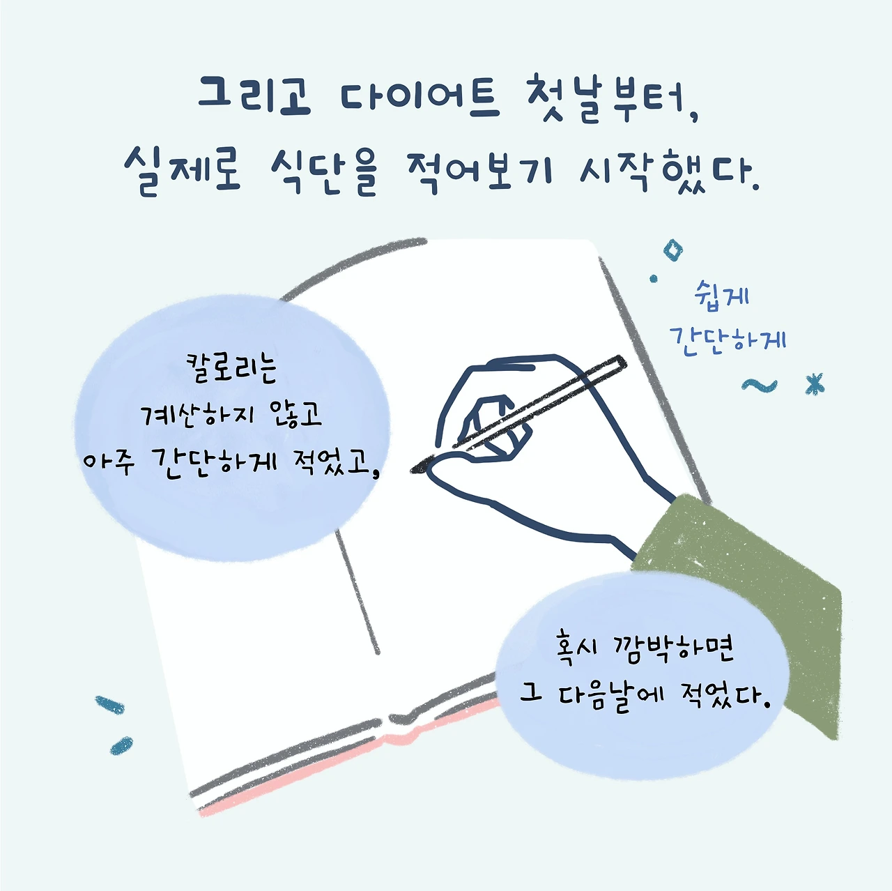 혹시 깜박 잊으면 그다음 날에 적었고, 너무 세세히 기록하기보다는 잠시 떠올리는 마음으로 적으려 했다.