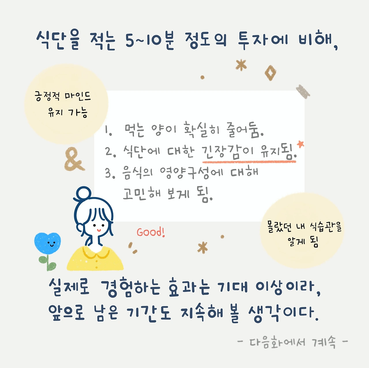 남은 다이어트 기간에도 '식단 기록'은 내게 즐거운 에너지를 주는 시간으로 지속될 것 같다.