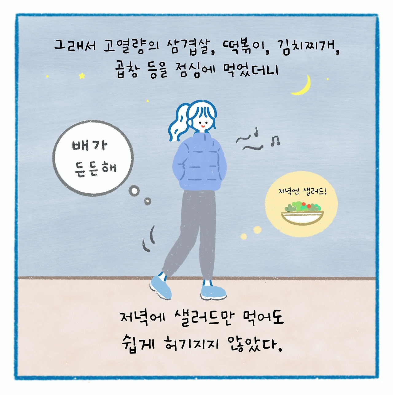 점심으로 먹었더니 확실히 저녁때 뭔가를 먹고 싶다는 욕구가 줄어들었다. 밤에 쉽게 당기기 쉬운 라면이나 피자 등도 가급적 점심에 먹고 나니 저녁때는 샐러드만 먹어도 쉽게 허기지지 않았다. 이전에는 낮시간은 일하는 중간이다 보니 점심은 최대한 간단하게 때우는 느낌으로 먹곤 했는데, 점심 후 약간 졸리더라도 든든하게 먹고 나니 전체적인 오후 시간에 대한 에너지가 상승하는 것을 느꼈다.