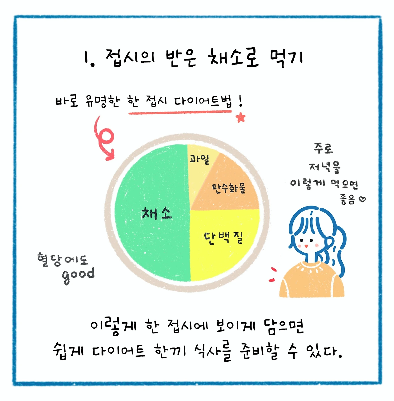 1. 접시에 반은 채소로 먹기