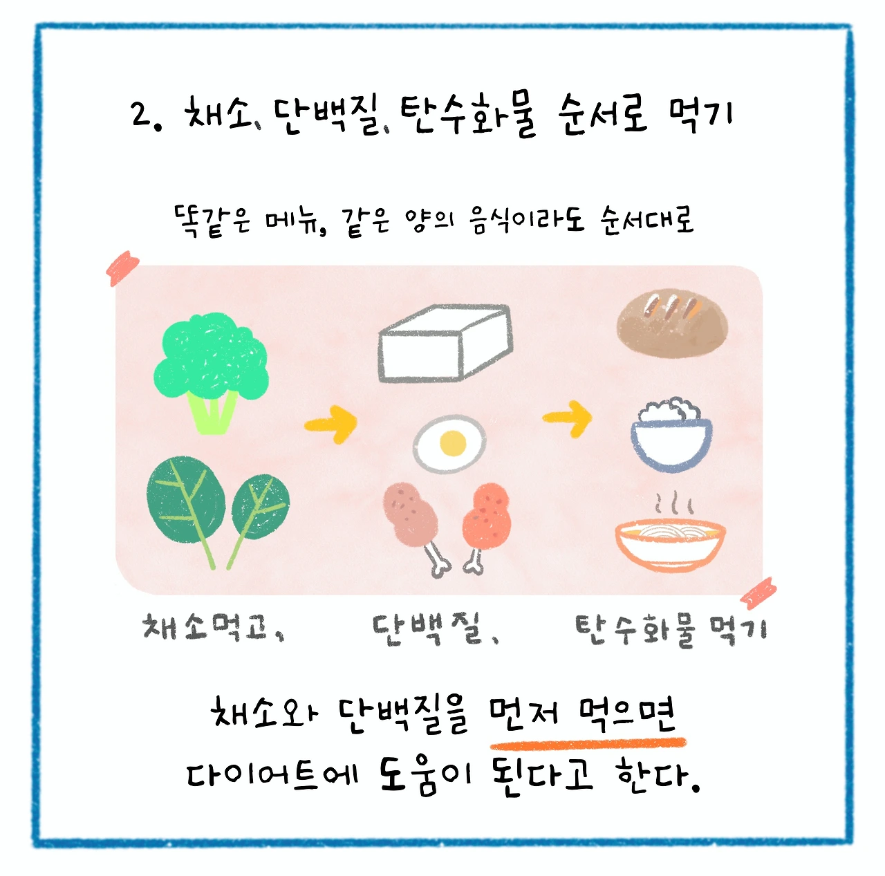 2. 채소 -> 단백질 -> 탄수화물 순서로 먹기