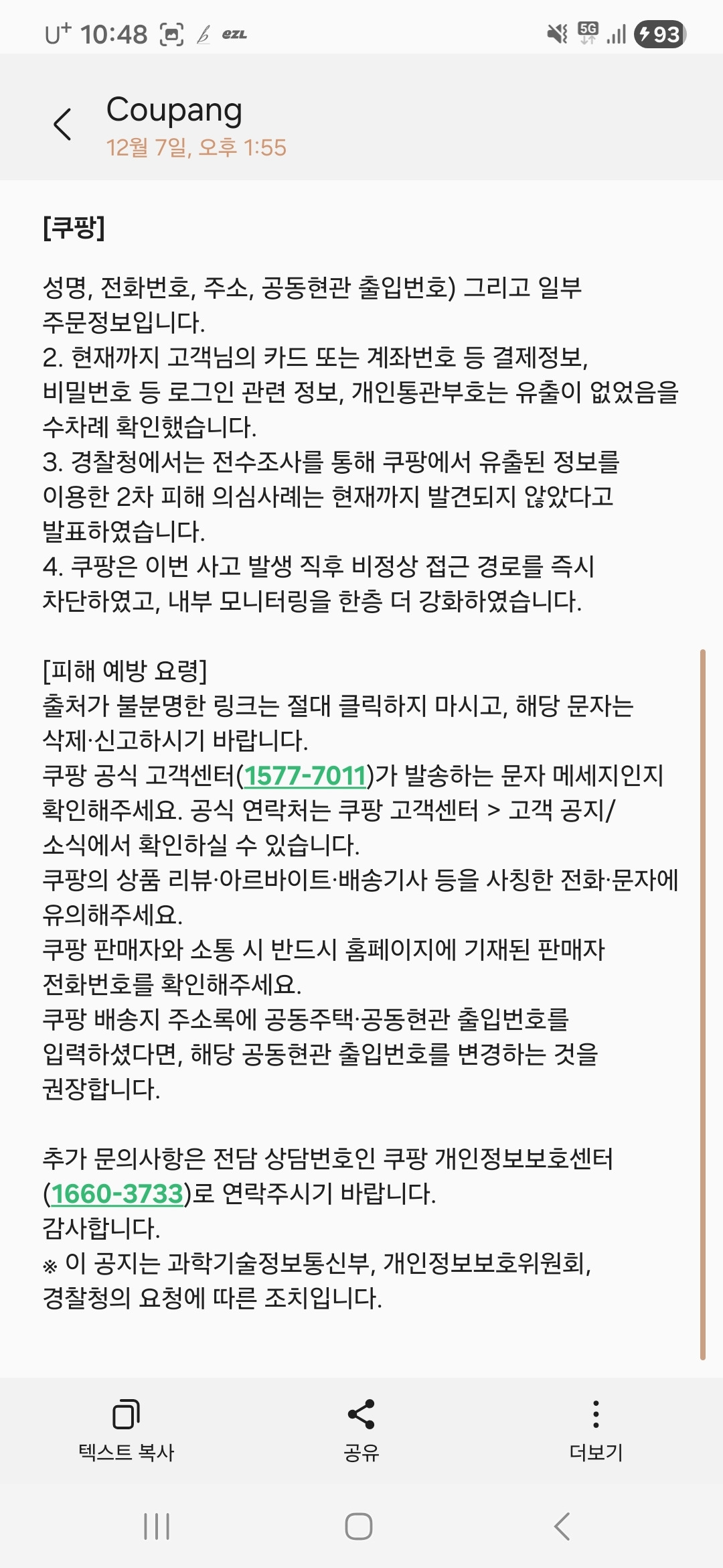 사나이는 서둘러 해명을 늘어놓았다. 그는 처음 이렇게 말했다. "그건 유출이 아니라 노출입니다.", "중요한 정보는 빠져나가지 않았습니다.", "결제 정보는 안전합니다." 하지만 사람들이 납득하지 못하자 며칠 뒤 단어 하나를 바꿨다. "노출이 아니라 유출이라고 하는 게 맞겠습니다." 단어는 바뀌었지만 결국 말의 핵심은 같았다. "우리 책임은 없다.", "중요한 건 빠져나간 적 없다." 심지어 그는 "경찰 조사에서도 2차 피해는 없다"라고 강조했다.